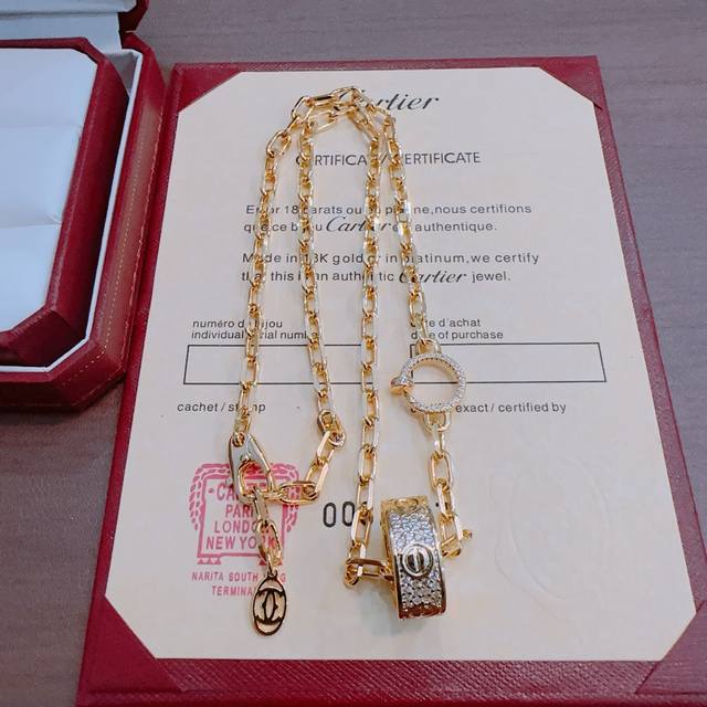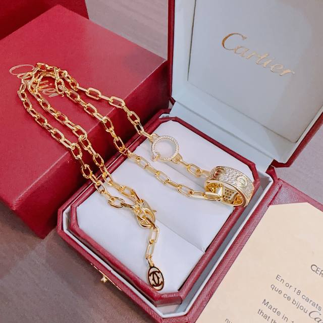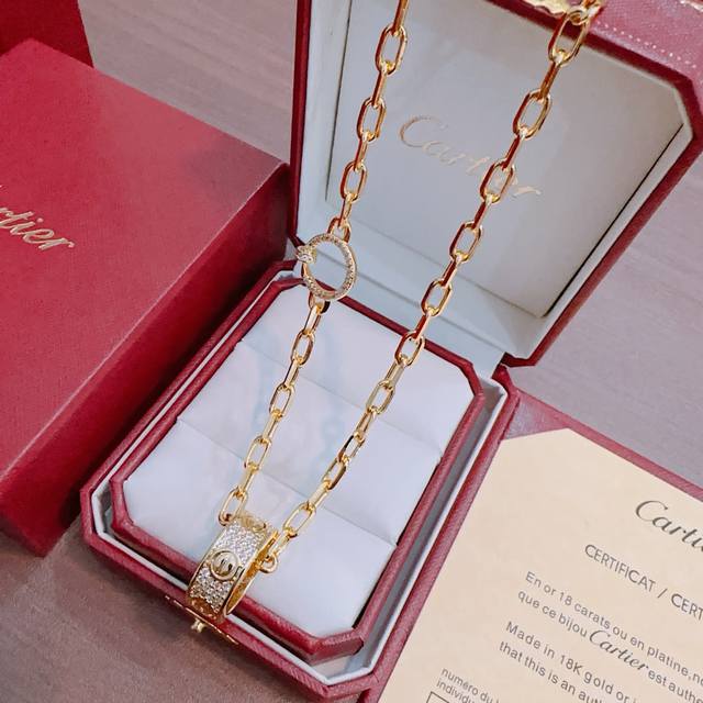 New Cartier necklace with diamonds, V gold series, perfect condition, unparalleled details, the unique color is absolutely impeccable, adorned with a classic ring design, simple yet elegant and eye-catching. The V gold handcrafted combination enhances your complexion, making it elegant and charming on the wrist. Unisex style.