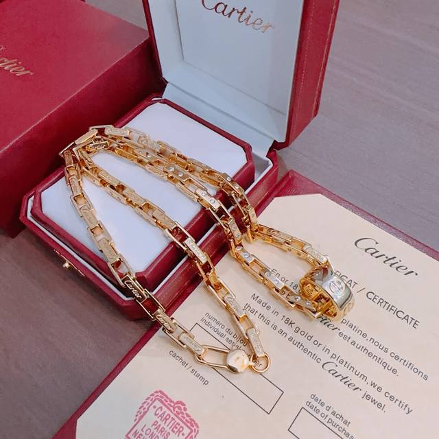New Cartier necklace with diamonds, V gold series, perfect condition, unparalleled details, the unique color is absolutely impeccable, adorned with a classic ring design, simple yet elegant and eye-catching. The V gold handcrafted combination enhances your complexion, making it elegant and charming on the wrist. Unisex style.
