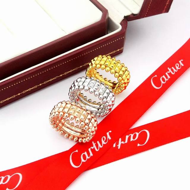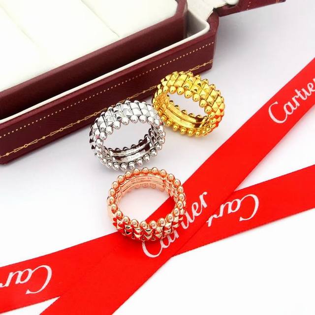 Size 6789 Cartier double-row bullet ring. This is one of the most popular styles; the small studs on both sides allow for free movement, making it a very unique design. Ring