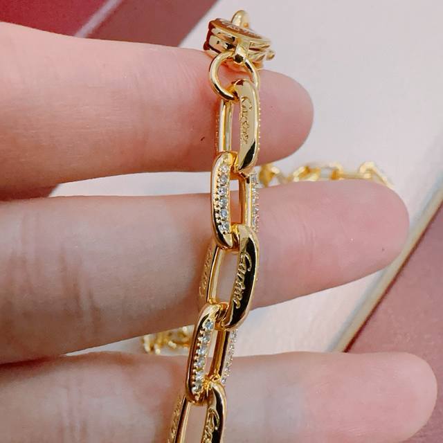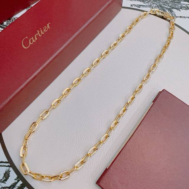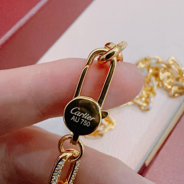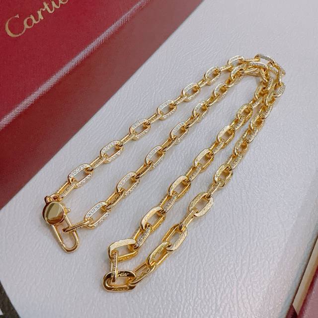 The new Cartier necklace with diamonds is made of V gold. The quality is perfect and the details are invincible. The unique color is absolutely impeccable. It is decorated with a classic ring shape. It is simple yet elegant and eye-catching. The V gold pure handmade combination makes it more youthful and elegant.