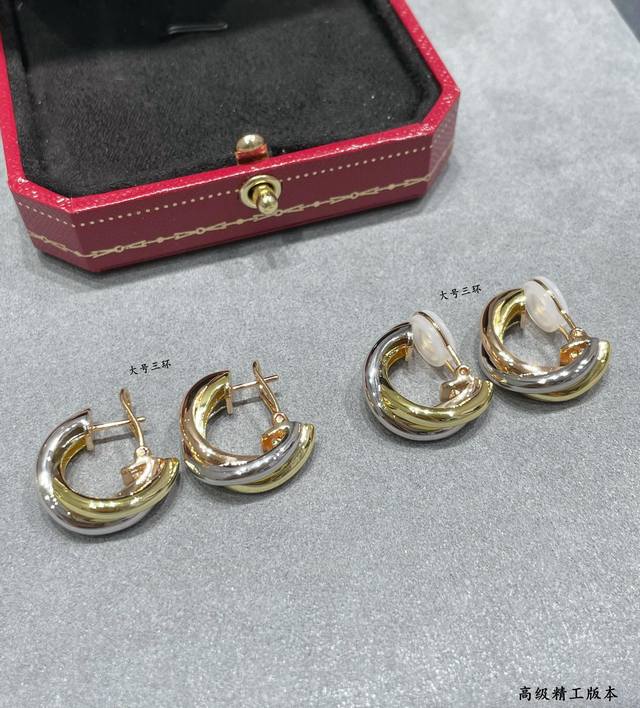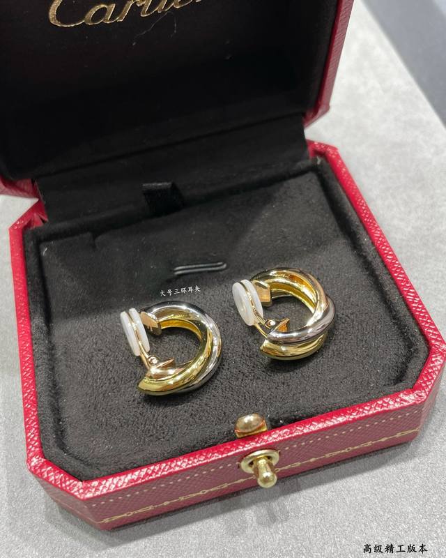 V Cartier Large Three-Hand Earrings in Gold, another classic, the encircling inlay perfectly embodies the elegant and symmetrical aesthetic. Highly comfortable to wear and not prone to snagging! The genuine gold texture is exquisitely crafted, and the mold and polishing are meticulously executed!