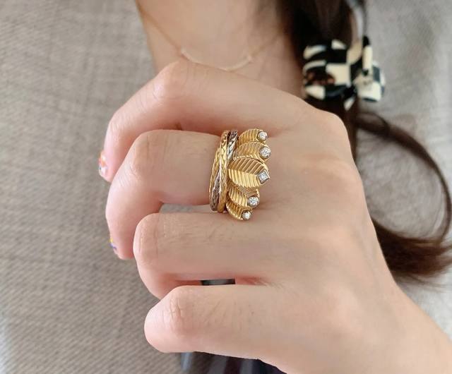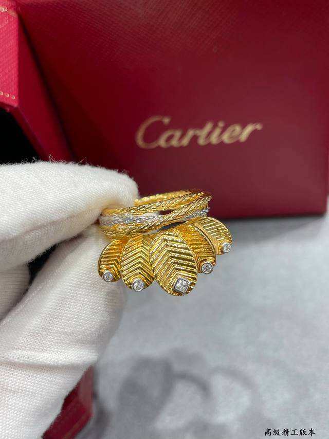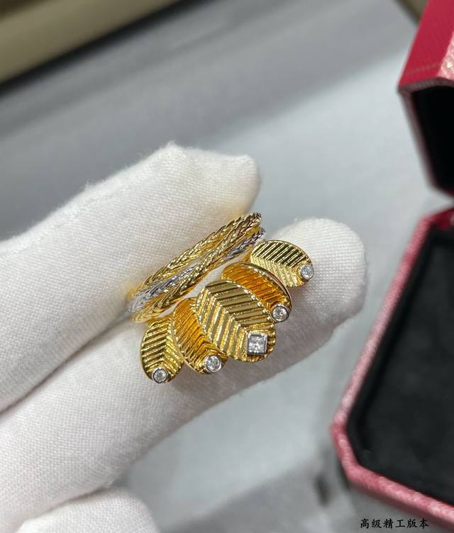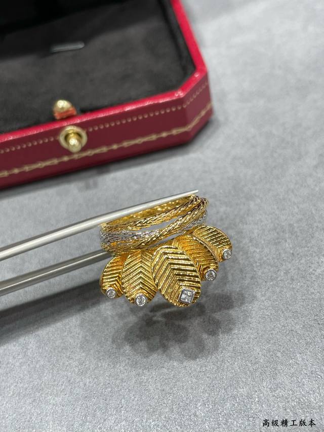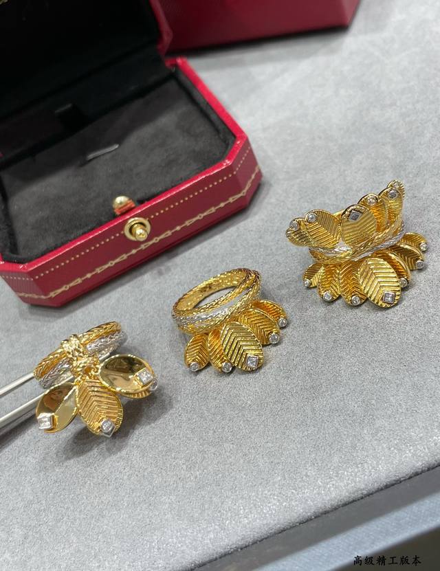 V gold material, size: 678. Cartier B style coffee bean leaf ring, classic and vintage coffee aroma, the gold perfectly sculpted coffee leaves to recreate the elegance and sophistication of the 1950s. Very textured, looks great with a sweater.