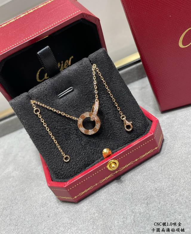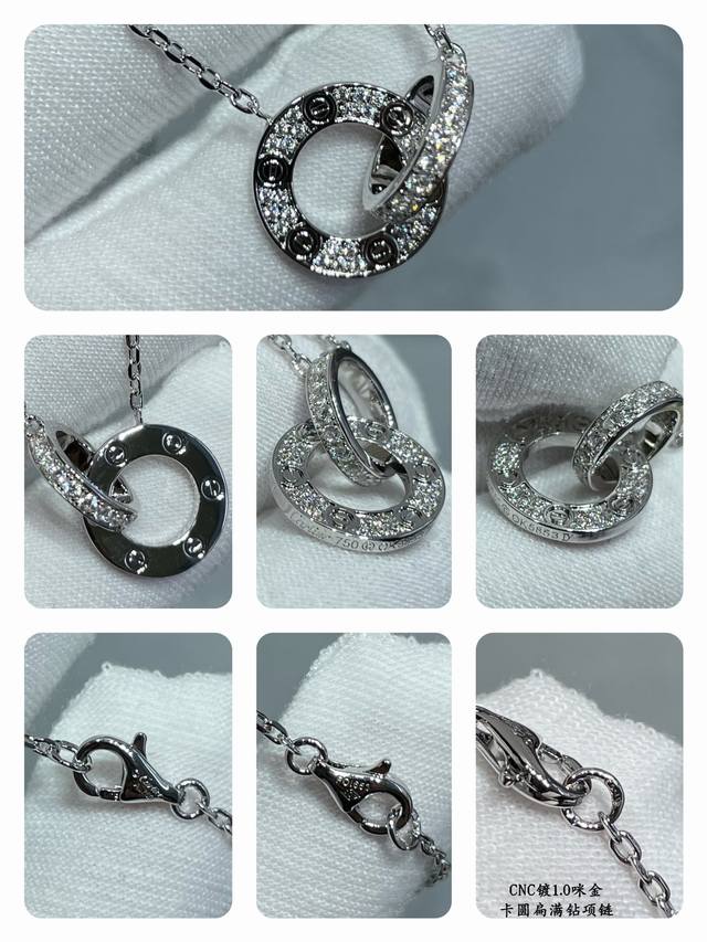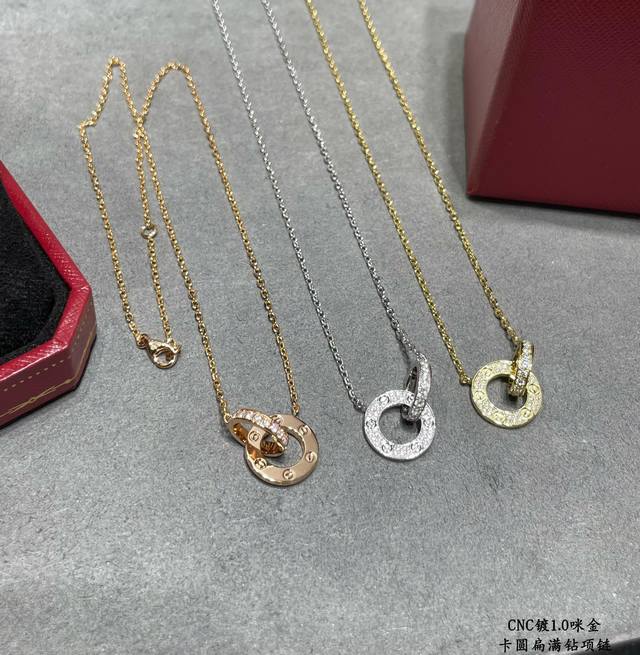 V Gold Plated Cartier Classic Round Double Ring Necklace (Cnc version), reversible, real photos, high-end customization. See the chain tag, engraving, and craftsmanship. An original replica, no problem entering a boutique. High-carbon diamond, luxurious and high-end, 1:1 logo tag, excellent value for money, perfect for personal use or as a gift.