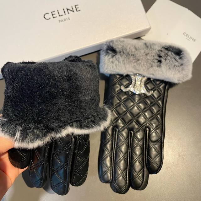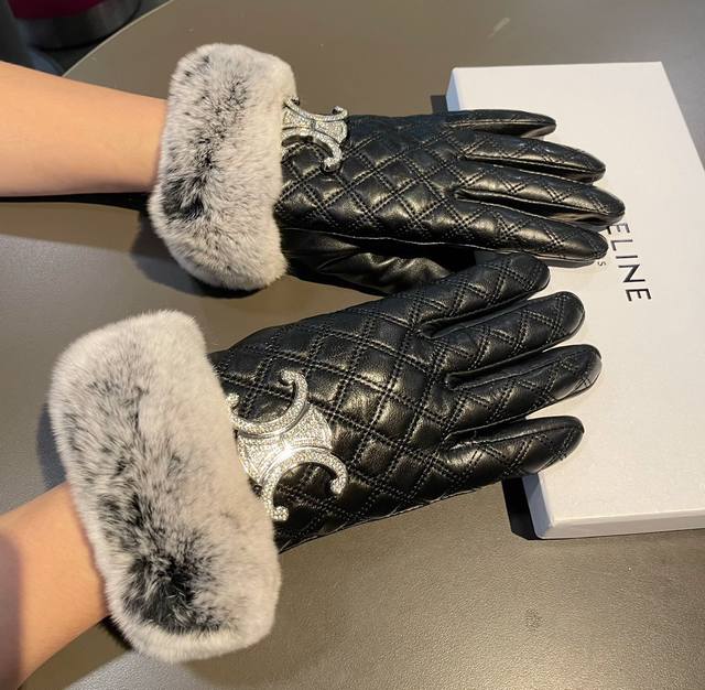 Celine 2025 Autumn/Winter Slippery Rabbit Fur Sheepskin Gloves for Touchscreen Phones. Worth comparing with similar styles of different quality, far superior to inferior products on the market. Imported first-grade sheepskin slippery rabbit fur lining, classic and timeless design. If you like it, you can buy it now. This quality means you can use it this year and still use it next year. Sizes M, L, D, D
