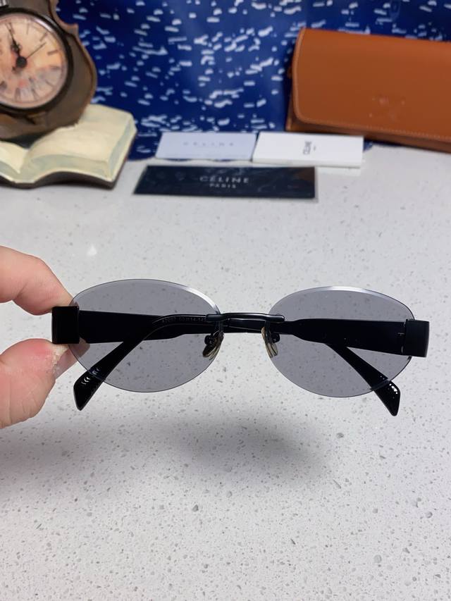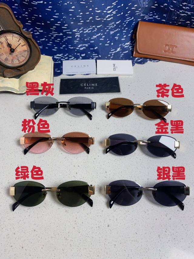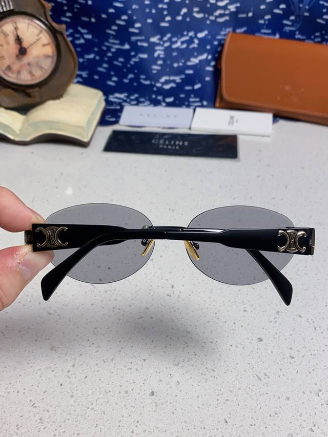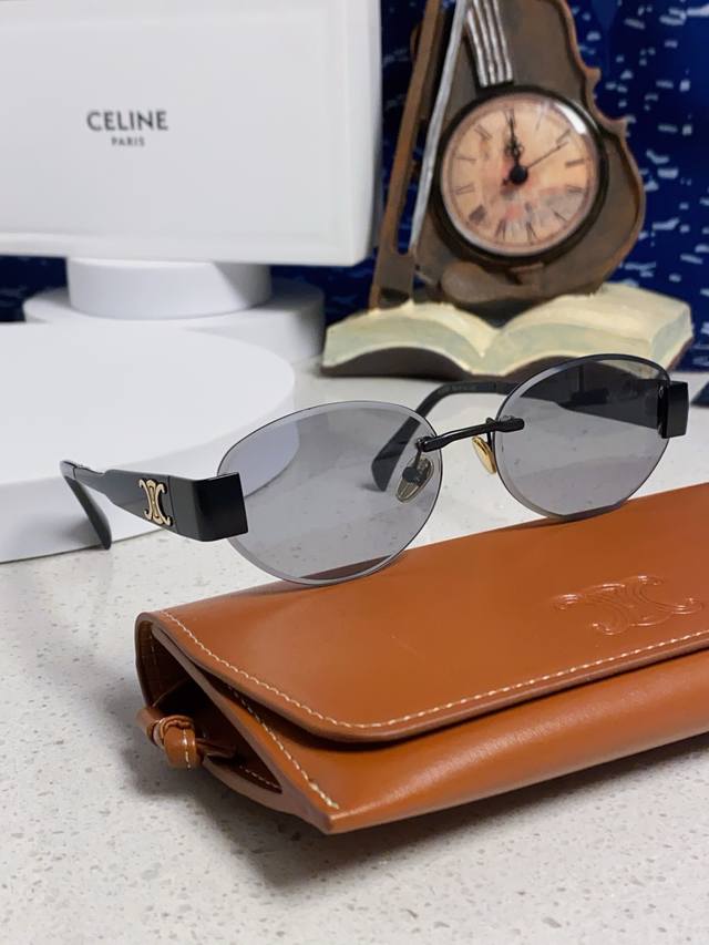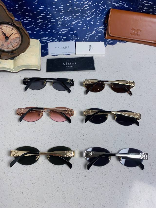 Celine 2025 New Sunglasses Arc de Triomphe Lisa Same Style Women's Vintage Metal Oval Shape