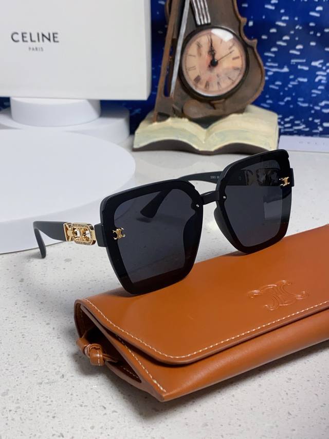 Celine 2025 New Women's Sunglasses, UV Protection, Sunscreen, Korean Style, Round Face, Slimming, Arc de Triomphe Fashion Sunglasses