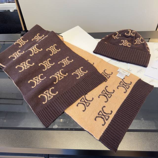 Celine 3-Piece Fall/Winter Set with Turn-Up Brim Wool Knit Hat - High-Quality Customization! This is a must-have for minimalists! Clean, crisp, stylish, and versatile, it suits all face shapes! A timeless classic! Suitable for both men and women!