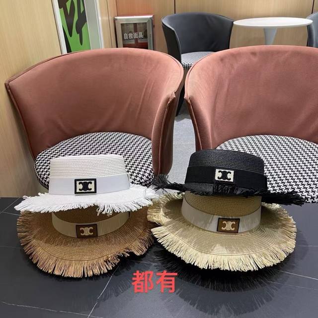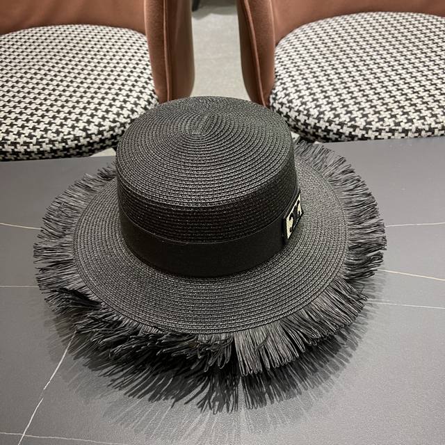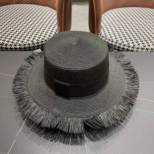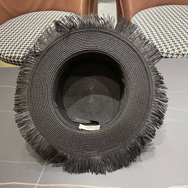 Celine Celine 2025 new large brim flat top straw hat, a must-have for going out and super easy to match, hurry up and get it!