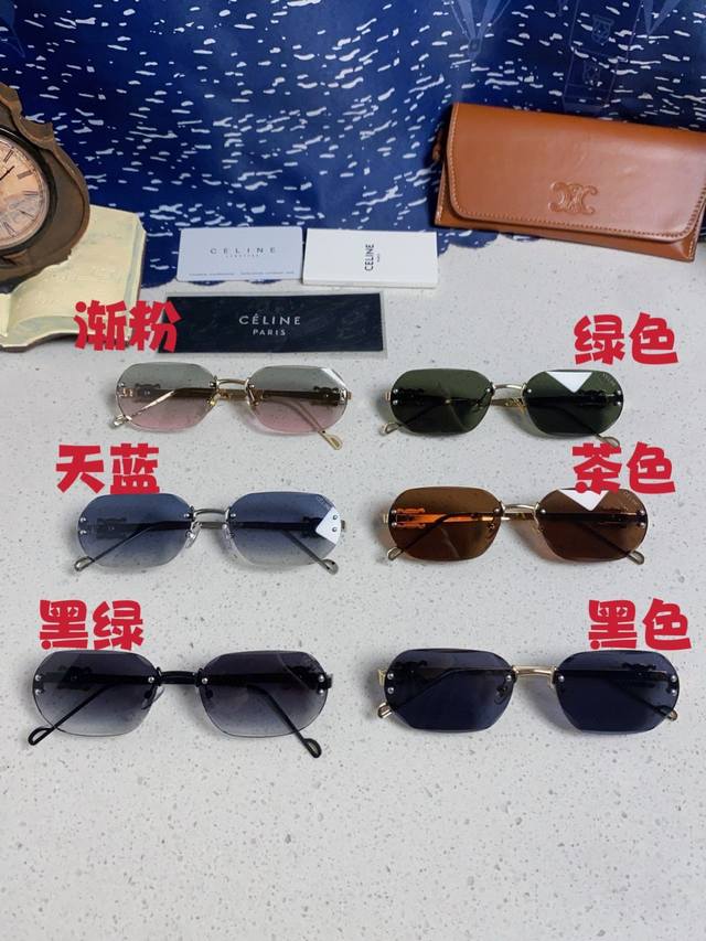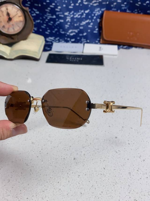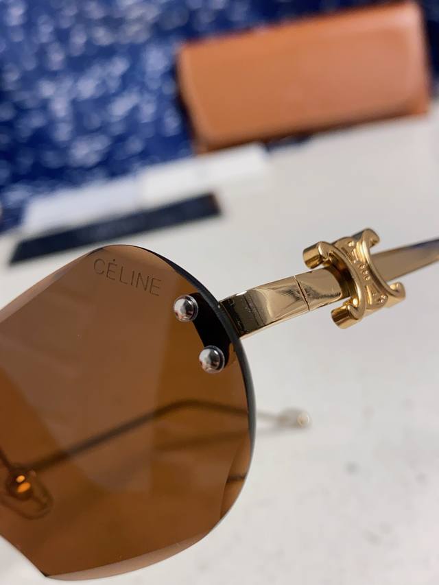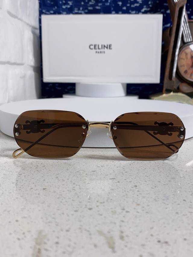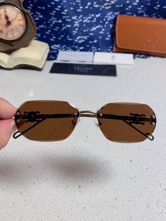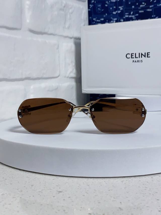 Celine polygonal frameless sunglasses, unisex, 2025 new style, UV protection, Am