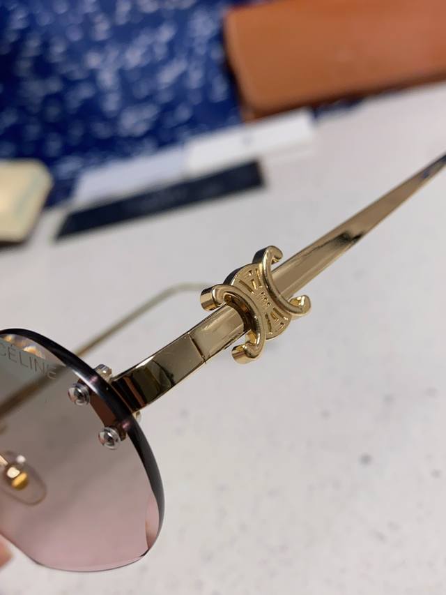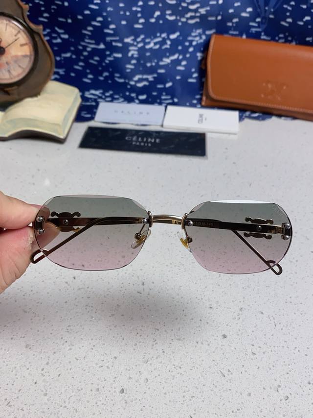 Celine polygonal frameless sunglasses, unisex, 2025 new style, UV protection, American retro brown gradient sunglasses.