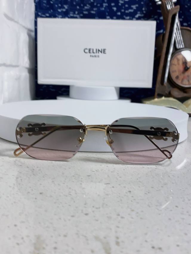 Celine polygonal frameless sunglasses, unisex, 2025 new style, UV protection, Am