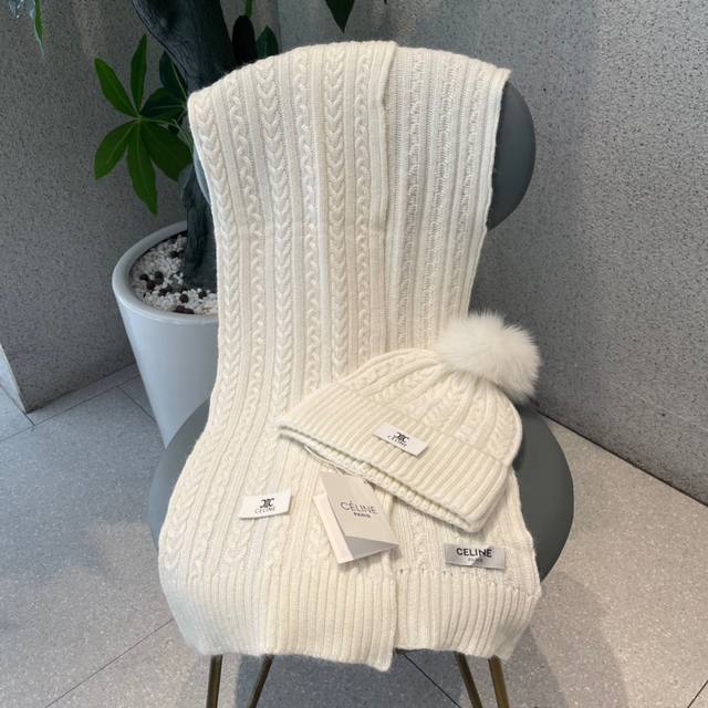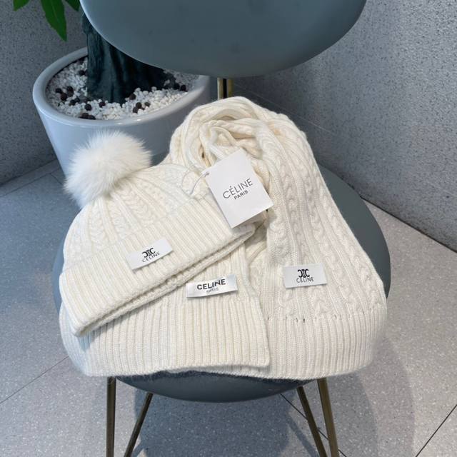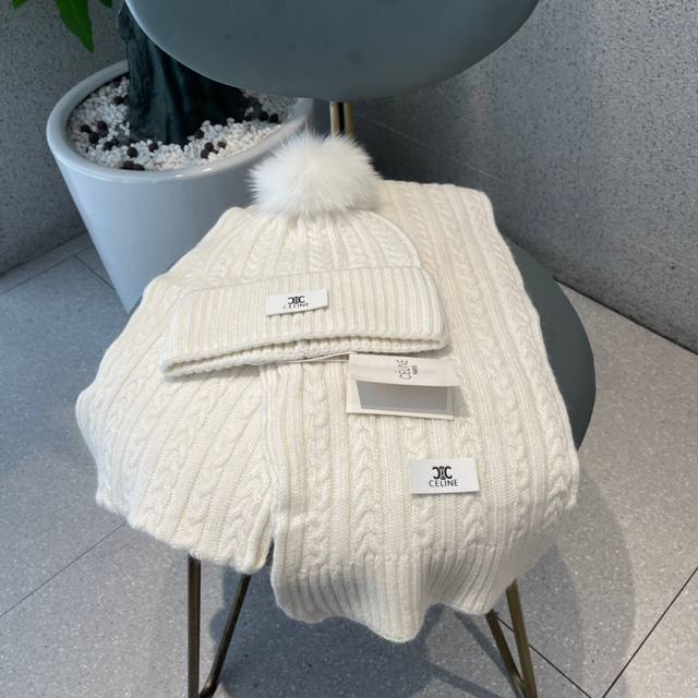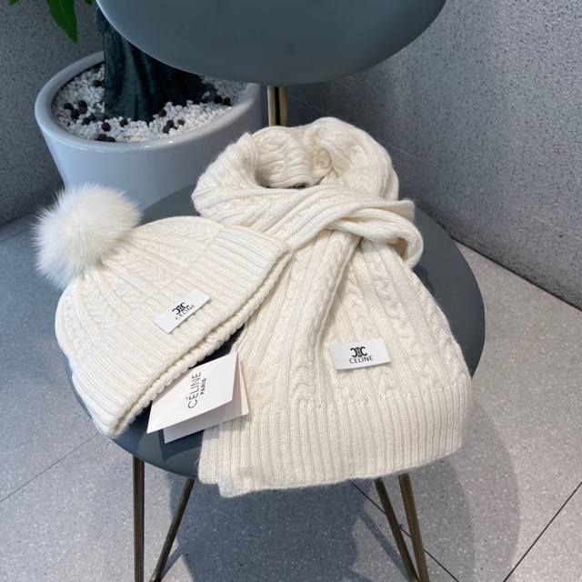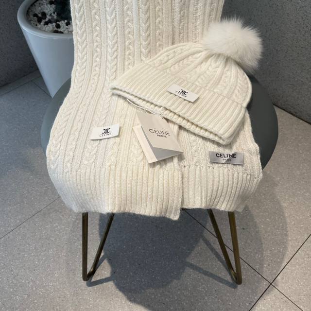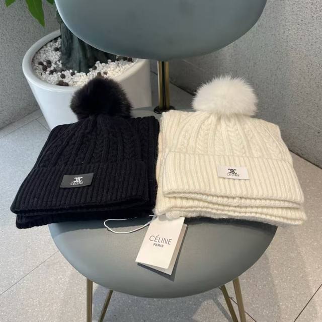Celine wool suit hat with fox fur ball classic suit hat! Hat scarf! Warm and super comfortable ~ Winter lady age-reducing artifact ~ This winter, you need a set of hats and hats ~ Warm and stylish! Unisex style