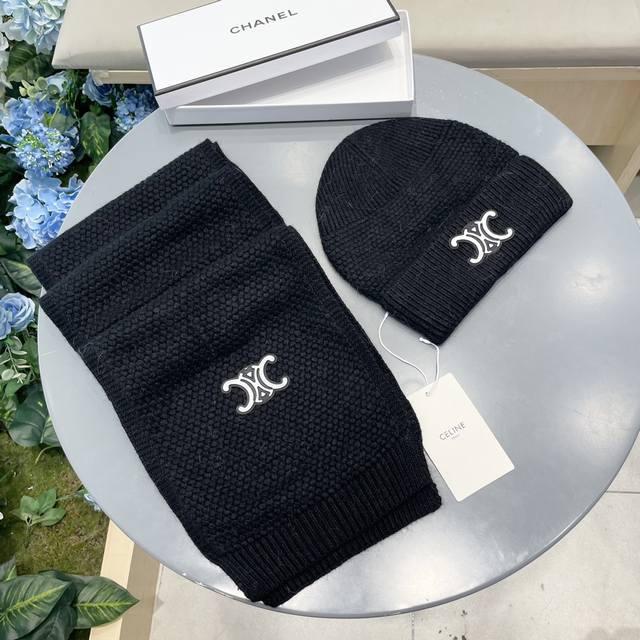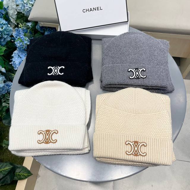 Celine's. Classic wool hat and hood set! Hat and scarf! Warm and super comfortable~ A winter essential for looking younger~ You're missing a matching hat set this winter~ Warm and stylish! Unisex.