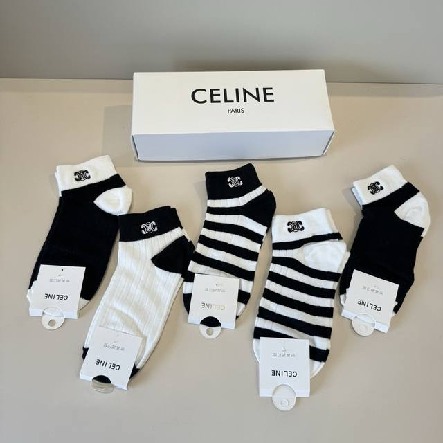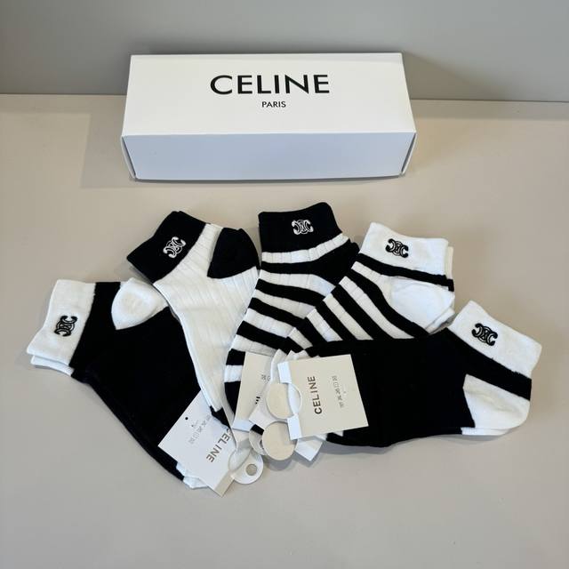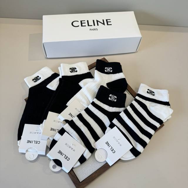 Celine's new early autumn mid-length socks, classic style, fashionable and advanced! A must-have for fashionistas, with versatile colors. 5 pairs per box