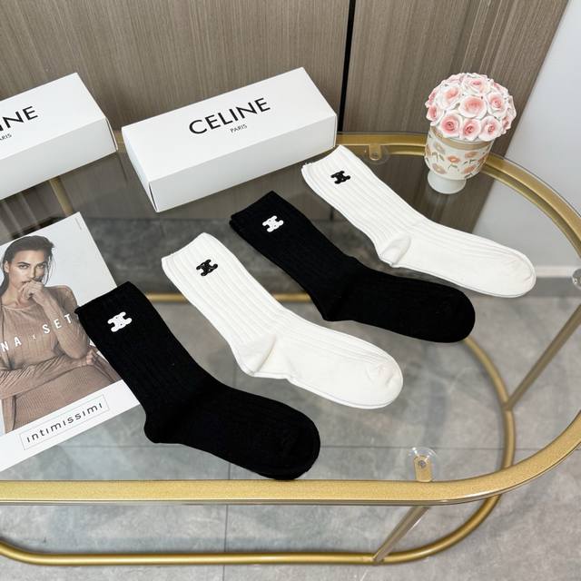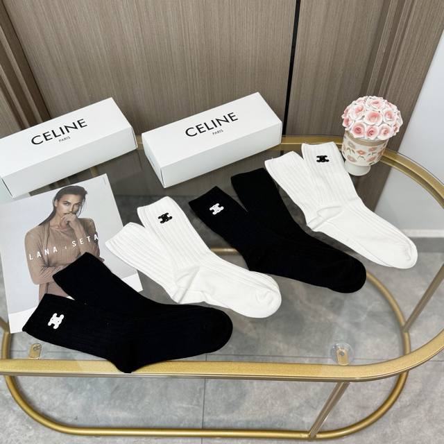 Comes in a box of four pairs of Celine high-quality, super popular online celebrity socks. Chanel's official website synchronized hot-stamped letter-printed mid-tube socks, recommended by Instagram celebrities and online celebrities. Made of pure cotton, light, soft and breathable, suitable for all seasons, a must-have for European and American street brands.