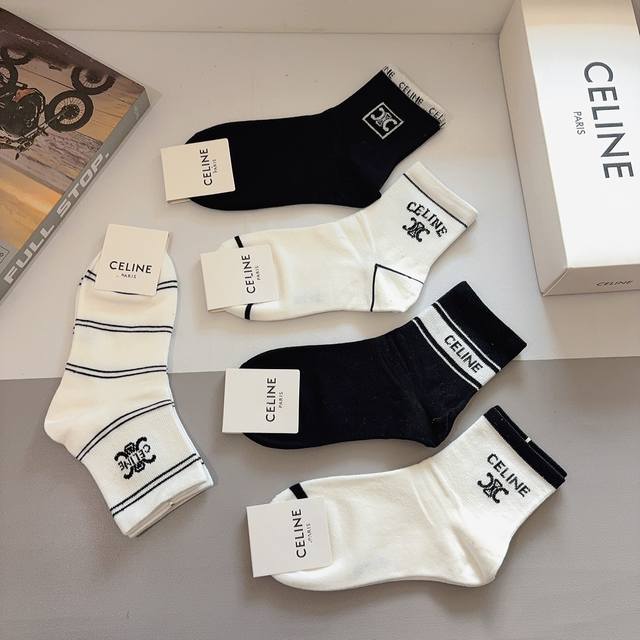comes with a box of 5 pairs of Celine's new boat socks! Made of pure cotton, these mid-calf socks are the same as the ones sold at the counter. A must-have for trendy people, super easy to match.