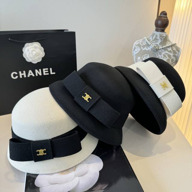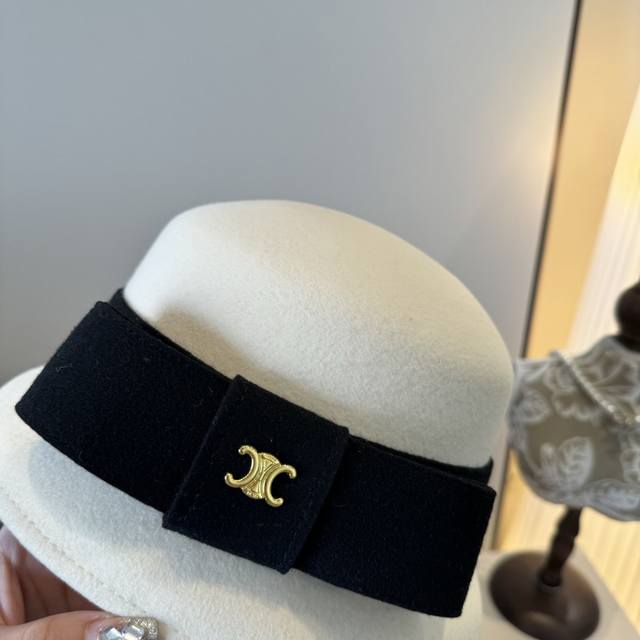 / p White Celine Fall/Winter New Wool Bucket Hat, 100% Wool Fabric, Head Circumfer