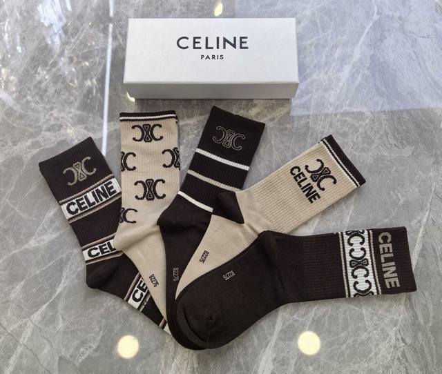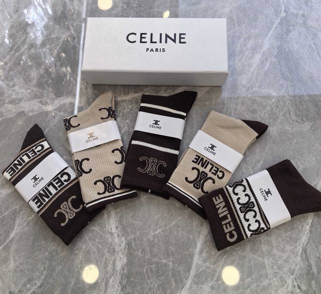 Special Celine Celine Ce home new arrival women's mid-calf socks, one box of five pairs of pure cotton material, soft, comfortable and breathable, jacquard classic Ce logo, big brand out, trendy must-have, super easy to match