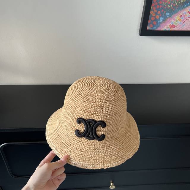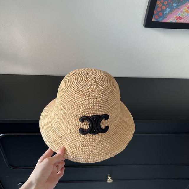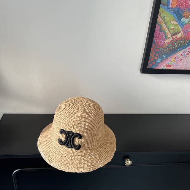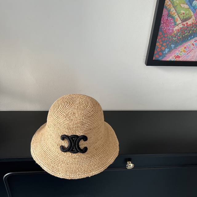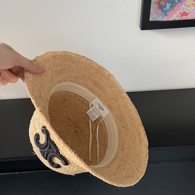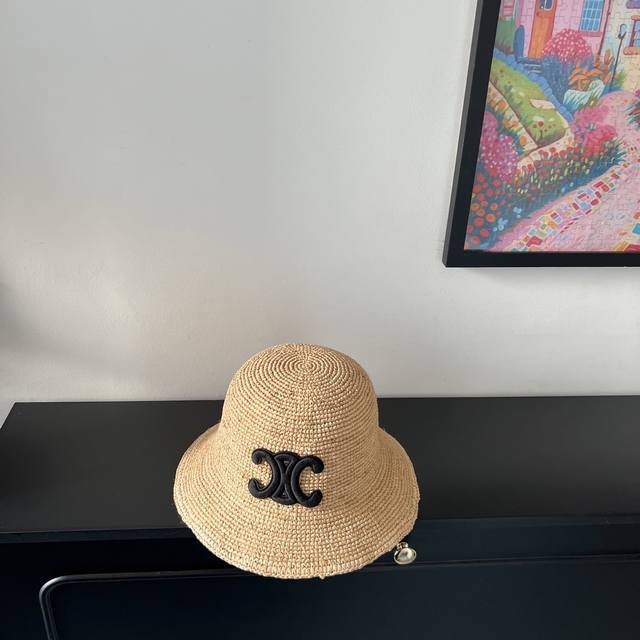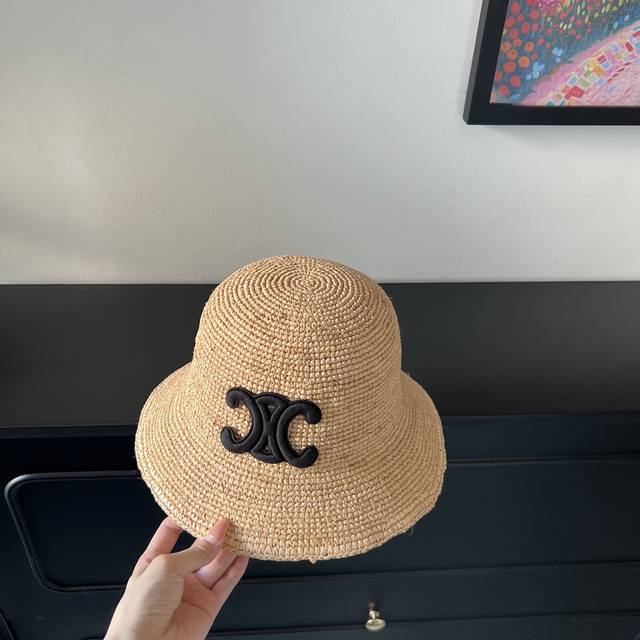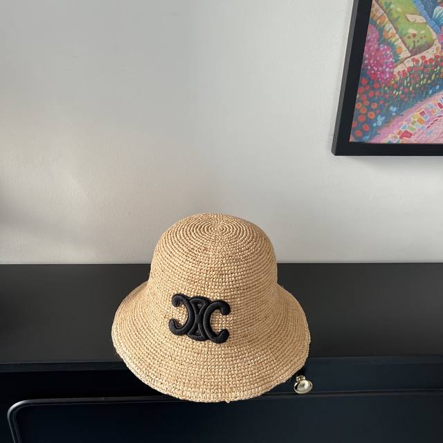 Special price with dust bag. Celine's new 2025 densely woven raffia straw hat, perfect for travel.