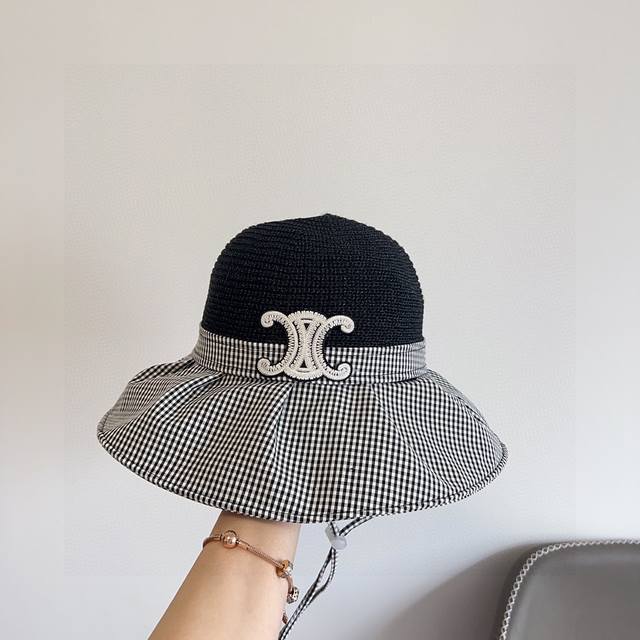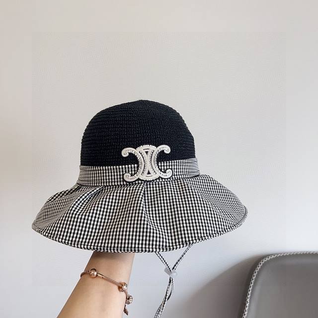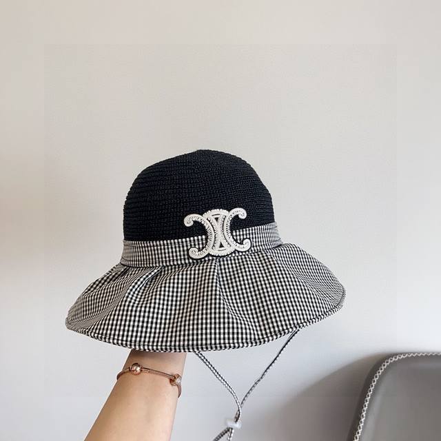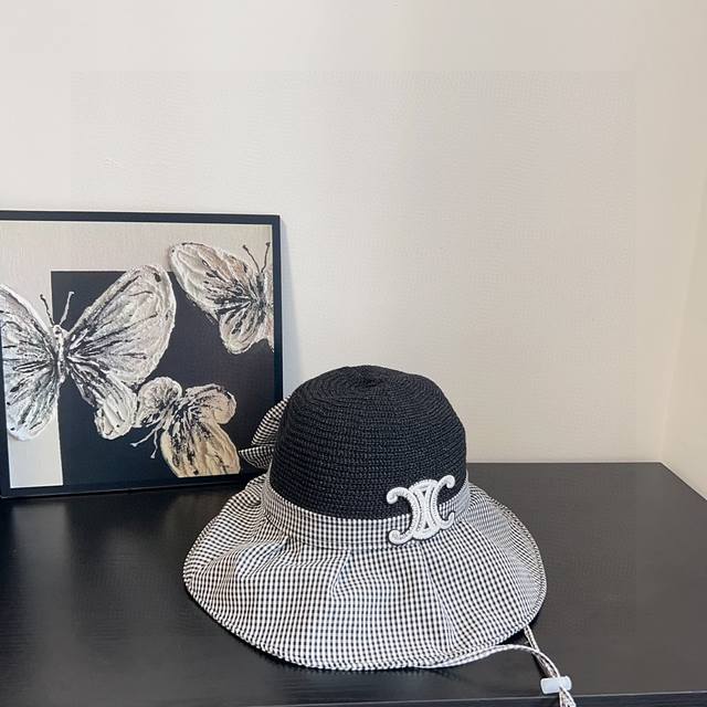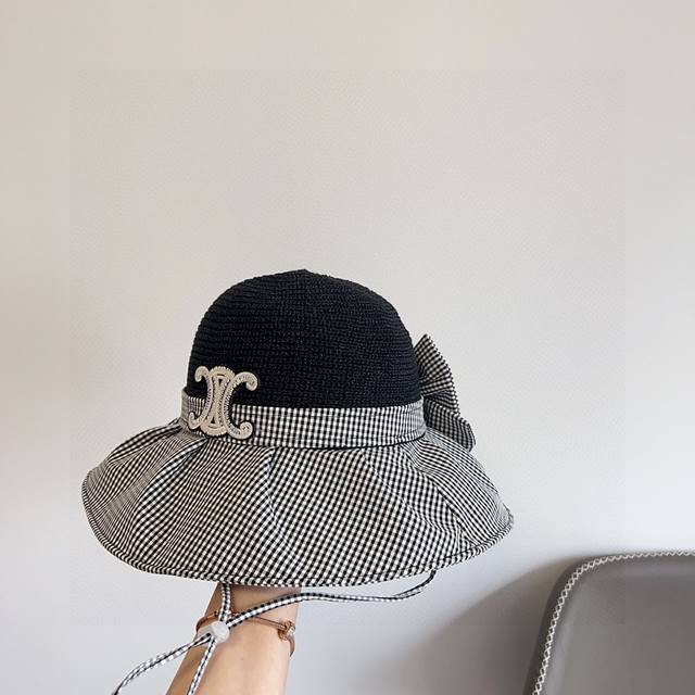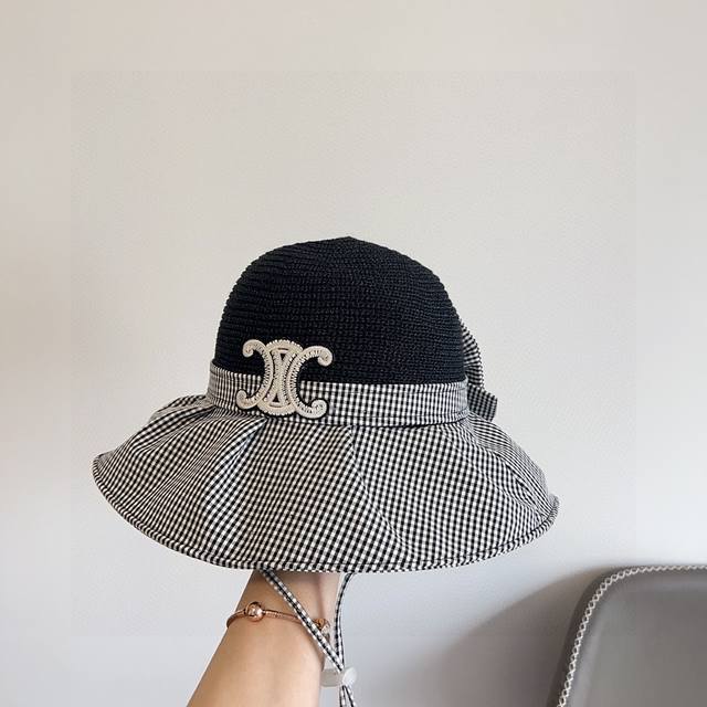 Specially equipped with dust bag Celine Celine 2025 new plaid sun visor holiday style bucket hat, versatile everyday style ~ a must-have for going out
