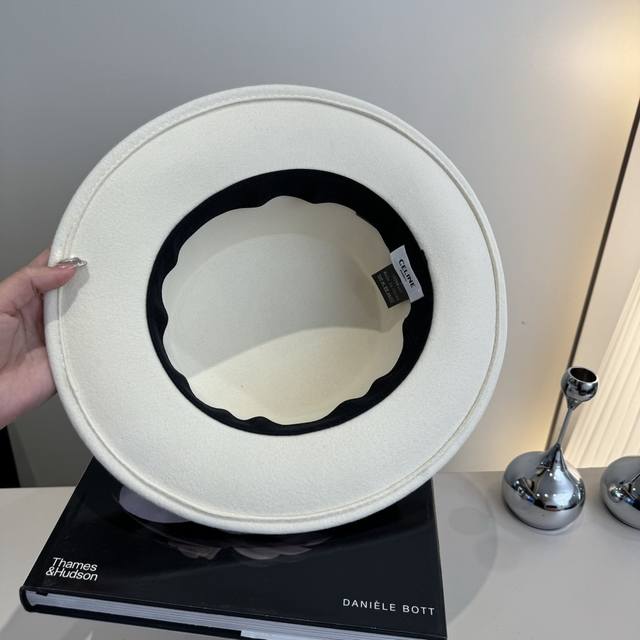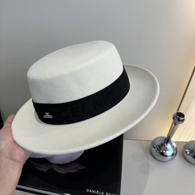 / White Celine Fall/Winter New Wool Hat, Flat Top Hat, 100% Wool Fabric, Head Cir