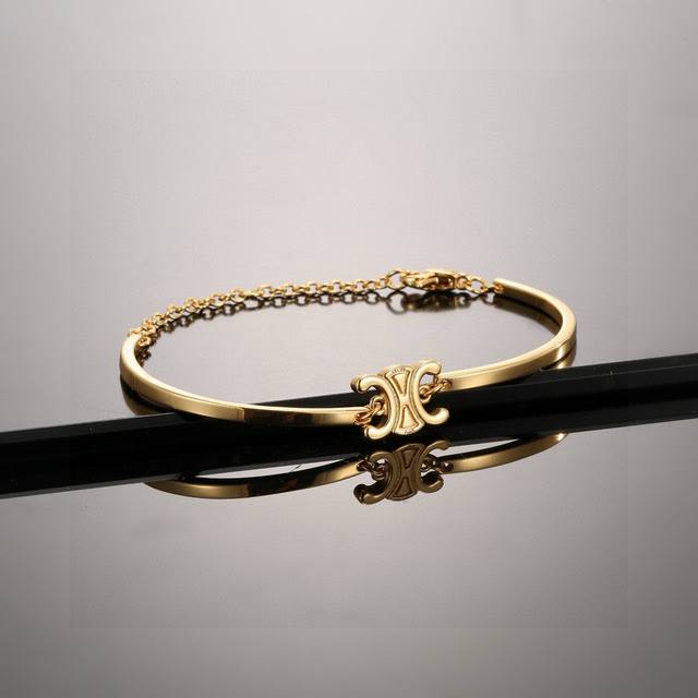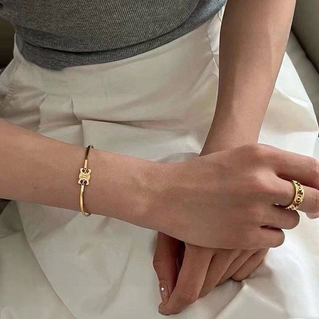 A popular Celine Arc de Triomphe bracelet on Xiaohongshu! Made of genuine gold with color-preserving engraving! Super chic, simple and versatile, artistic and unique, bringing you a fashionable experience. Highly recommended! A super easy-to-match, very casual piece that goes with everything.