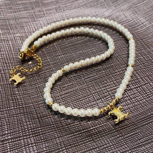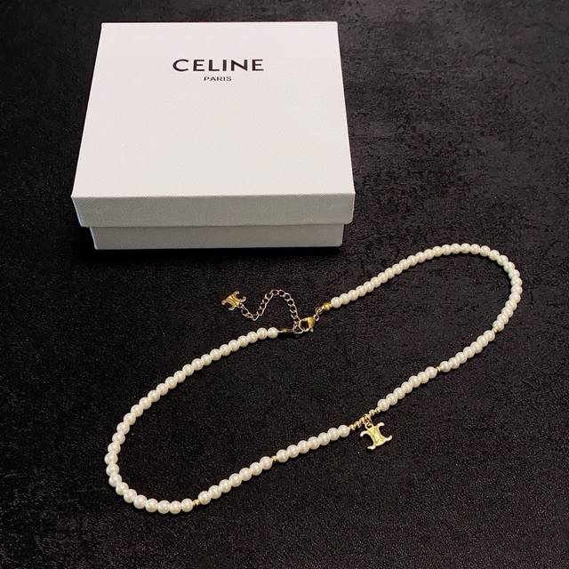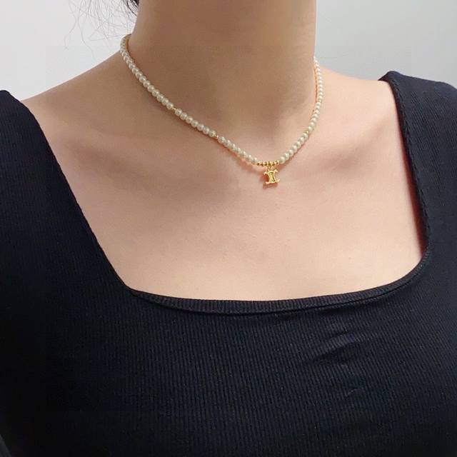 Celine Arc de Triomphe pendant pearl necklace with Arc de Triomphe pattern, cut craftsmanship, shiny chain, shimmering, super chic, simple and versatile, artistic personality, bring you a fashionable experience, highly recommended! Super easy to match, very casual and can be paired with anything.