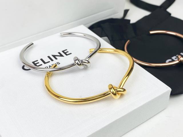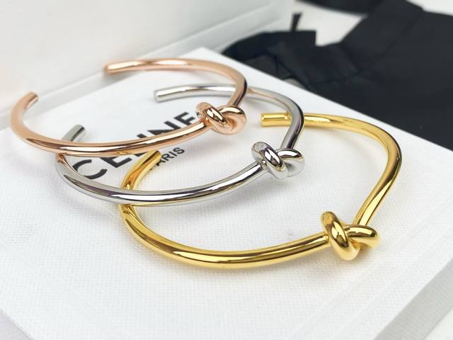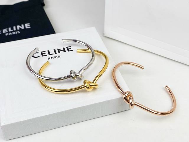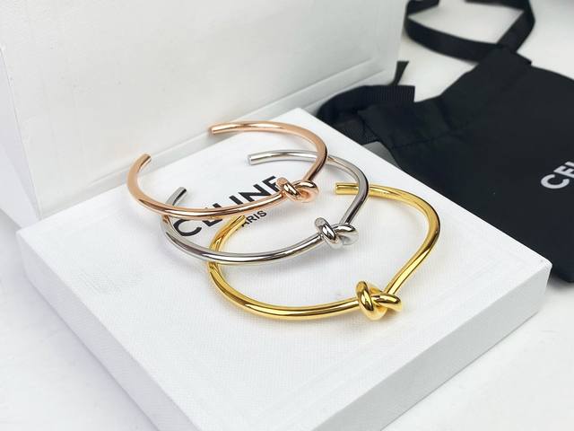 Celine's knotted bracelet features exquisite details and an elegant, refined silhouette. Crafted perfectly from aspixelated gold, it comes in three colors: white gold, fuchsia gold, and yellow gold. Its simplicity is captivating at first sight