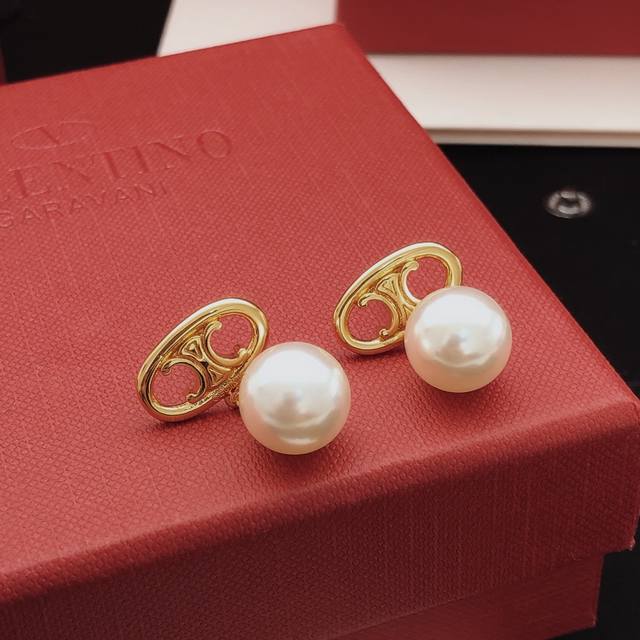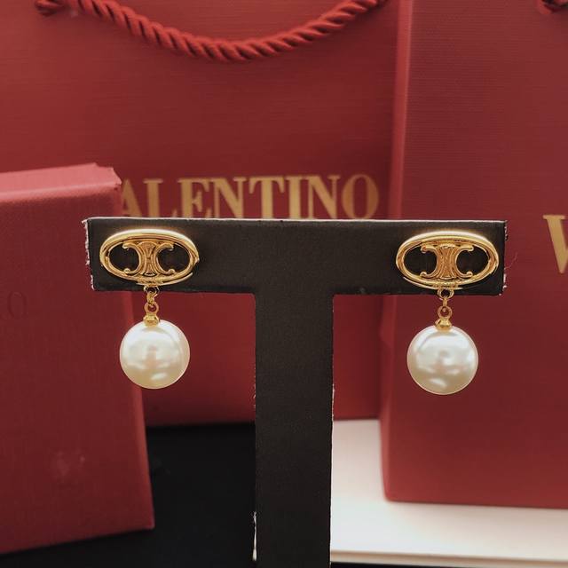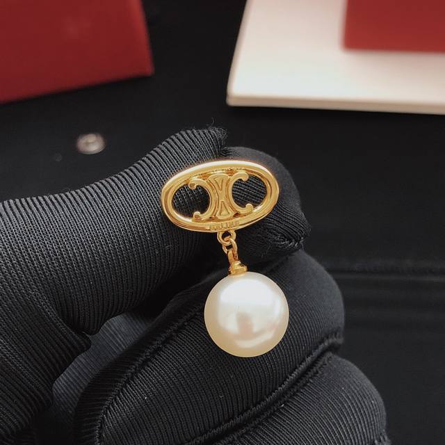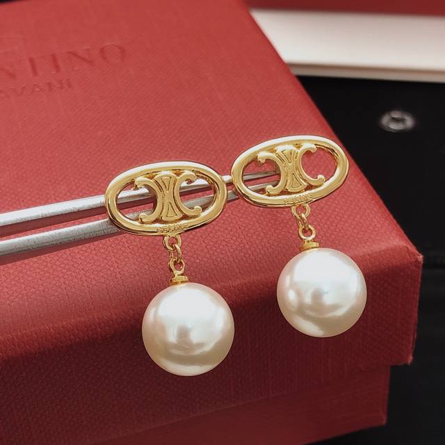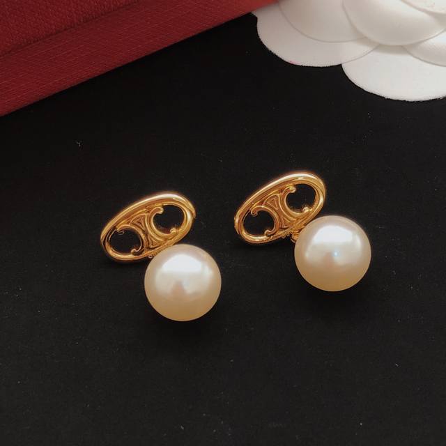 Celne Celine Arc de Triomphe pearl earrings niche daily super gentle brass material
