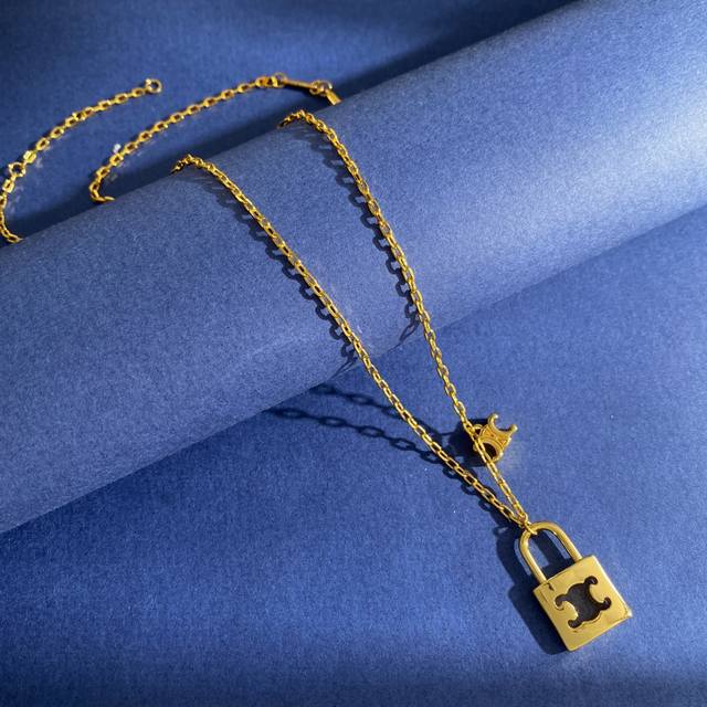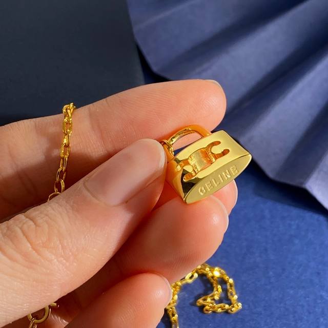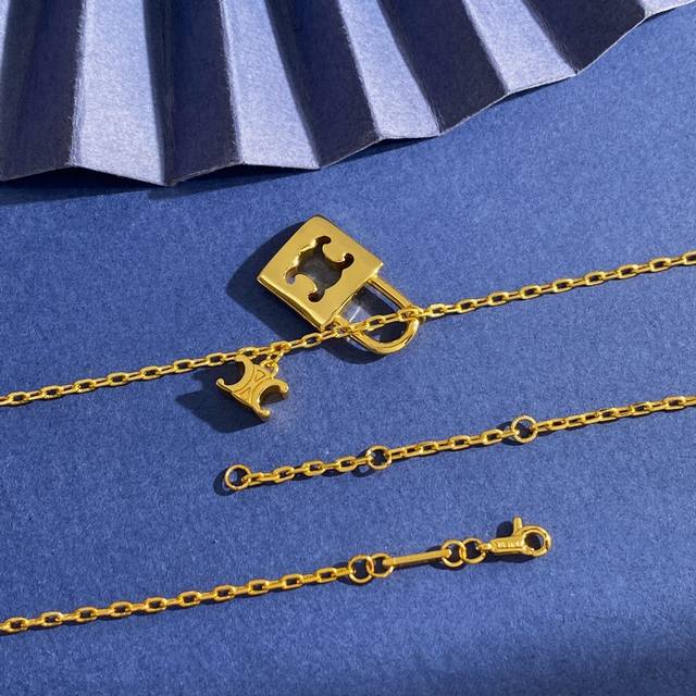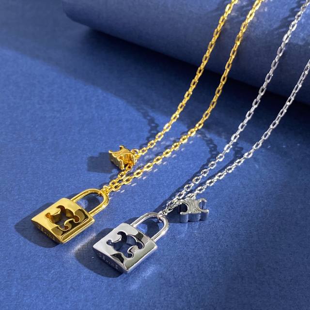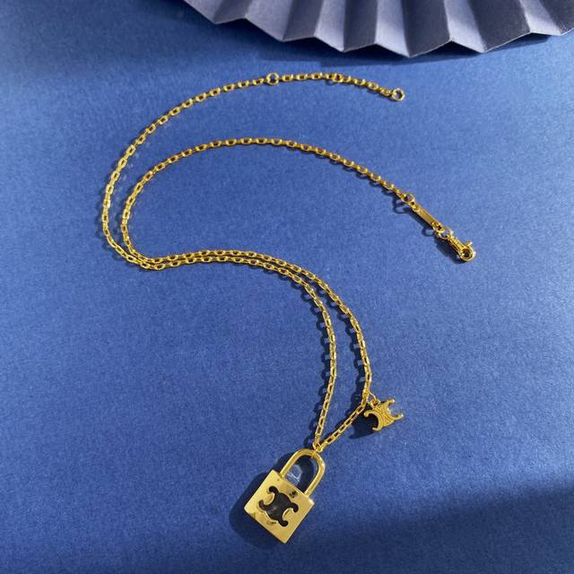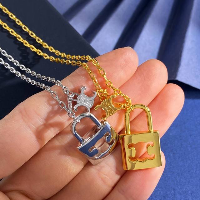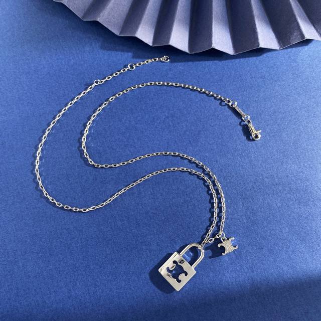 Celine Korean fashion temperament Arc de Triomphe hollow lock pendant necklace brass material gold and silver 2 colors weight about 10.5G