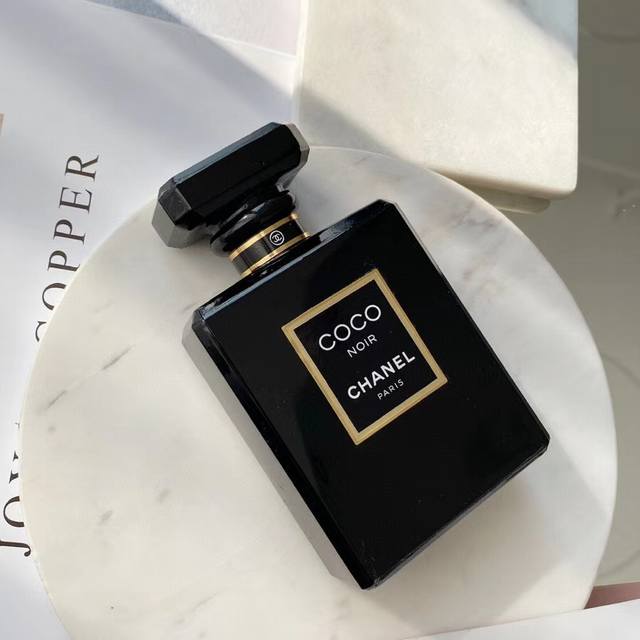 "Coco Noir," the new Miss Coco black perfume. Radiance shines through the black.