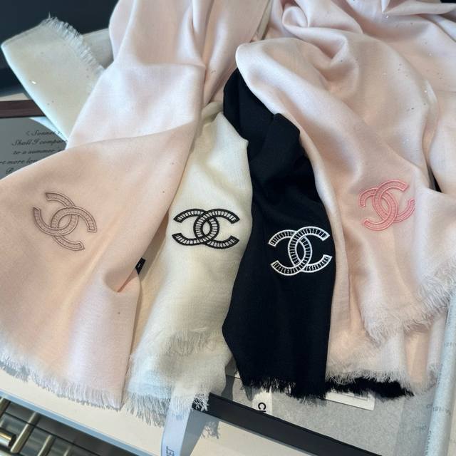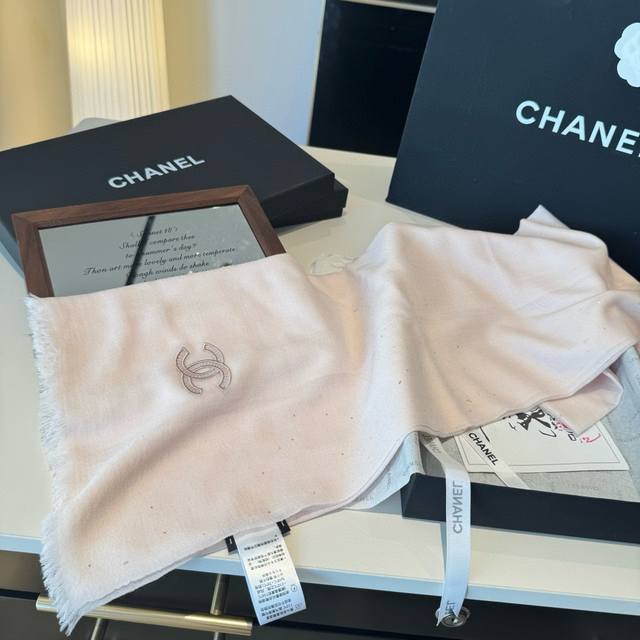 2025 Chanel sequined premium original item! Extremely gentle and beautiful color scheme! A high-end product presented in a grand manner, absolutely unique and unprecedented. 100% pure cashmere with subtle jacquard weave, the feel is incredible! Definitely a must-have, first come, first served! The craftsmanship uses imported 300-count pure cashmere combined with sequin embellishments, very high-end, understated yet luxurious. Size 90*205Cm. 100% imported pure cashmere.