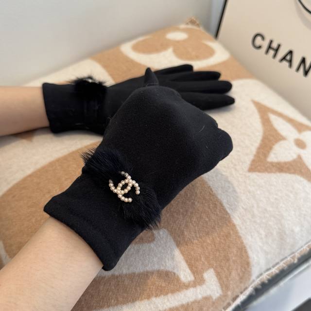 2025 New Chanel Wool Gloves, stylish gloves, warm and fleece-lined for autumn and winter, super comfortable and soft to the touch, versatile! One size fits all.