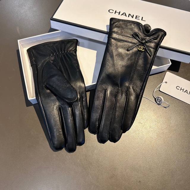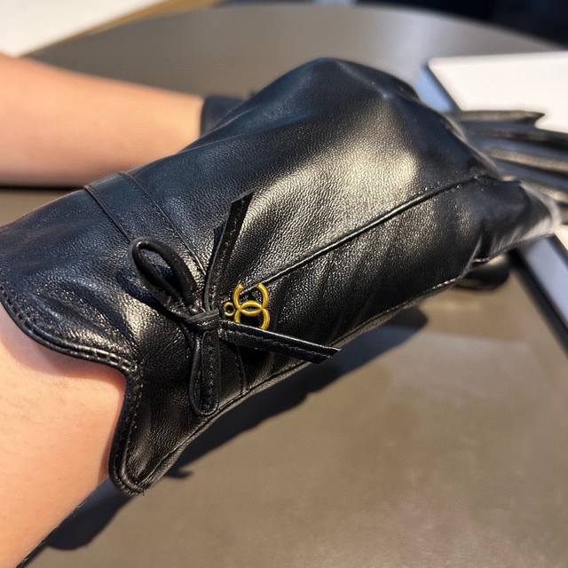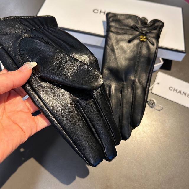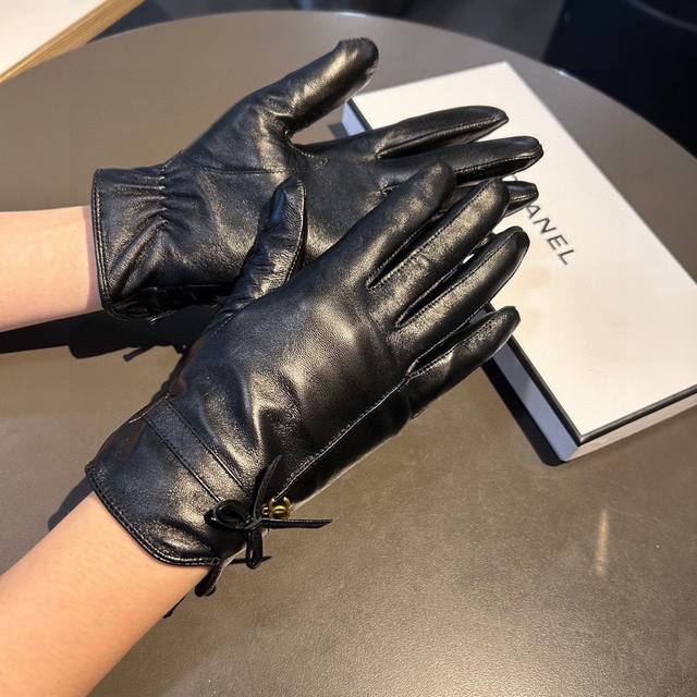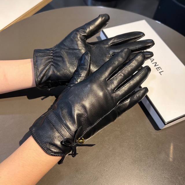 2025 new exclusive touch-screen gloves, Chanel original quality official website synchronized new high-end sheepskin gloves for women, goddess's first choice, can't be missed, 100% imported sheepskin leather, delicate and soft, look for imported sheepskin with unique feel, cashmere lining for better warmth, butterfly double C goddess Jimei must-have, top workmanship, no detail is overlooked, authentic open version counter one to one size size: M L
