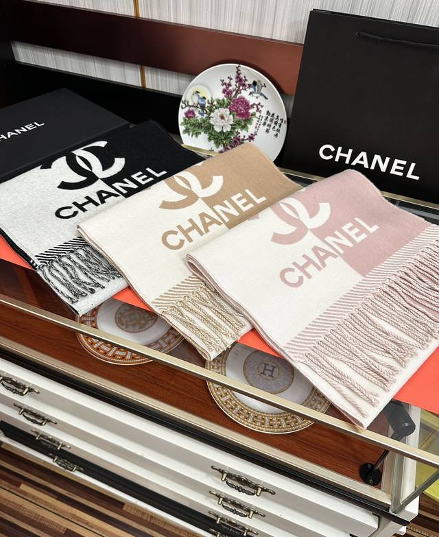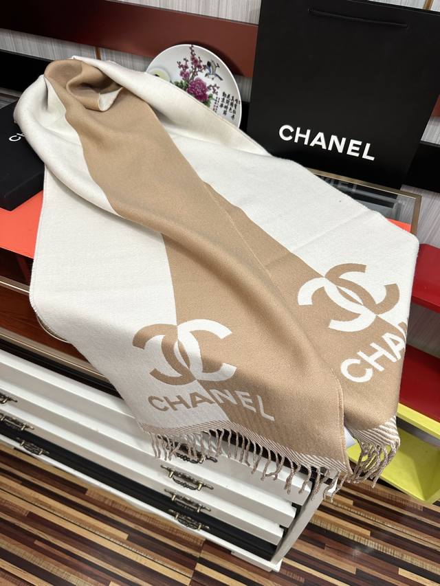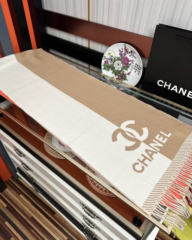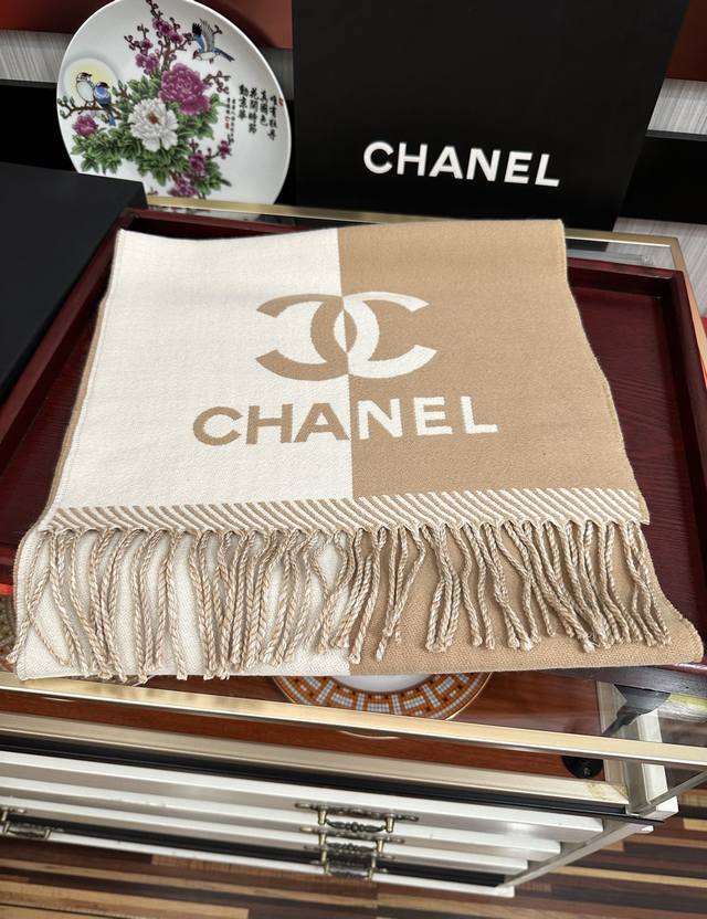 2610 Chanel's latest double-sided color-blocked jacquard scarf looks like a huge hit. The double-sided jacquard design with completely opposite colors and patterns on both sides is truly thoughtful. The large brand logo and double C color-blocking embellishments make the whole scarf look high-end and beautiful. [Beer] The fabric is absolutely amazing: Merino virgin cashmere, the pinnacle of cashmere, not itchy at all, gentle and textured. Suitable for both men and women, versatile and flattering. A must-have! Size: 35X185 (excluding tassels), Material: Cashmere.