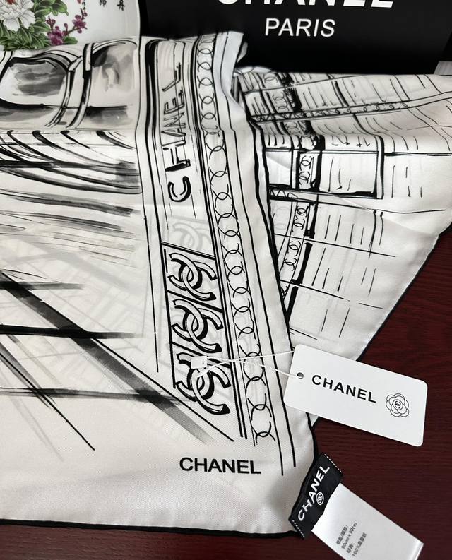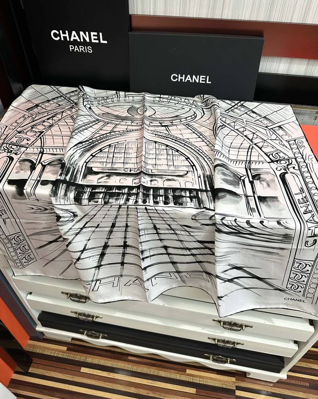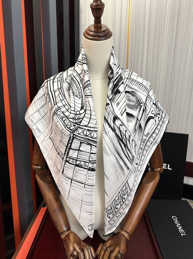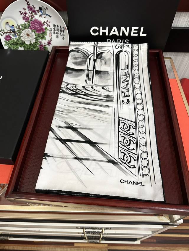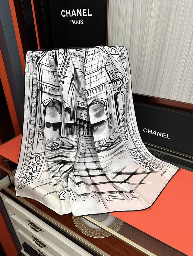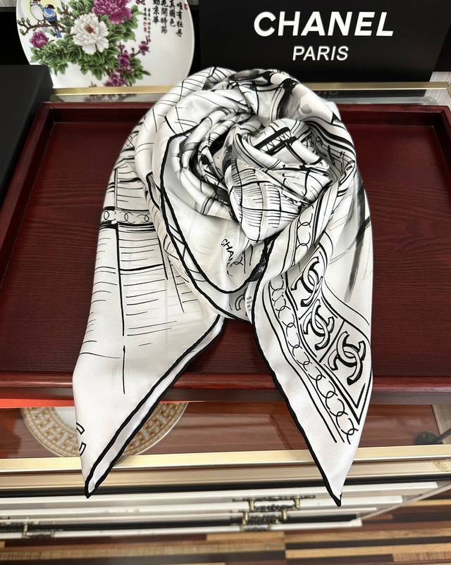2610 New Chanel style, this year's hottest item, a must-have silk scarf. The pattern, synchronized with the official website, is from the entrance of the main hall named "Gabrielle Chanel" in the Grand Palais in Paris. I fell in love with it at first sight. My first thought was to use it as a decorative silk scarf