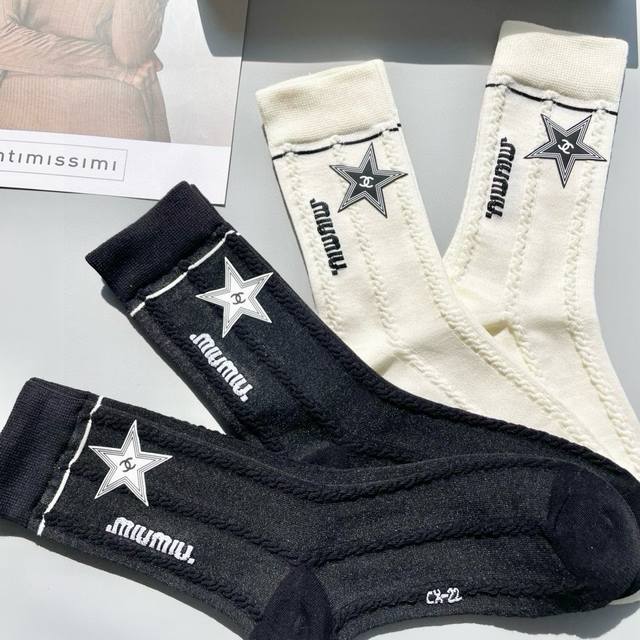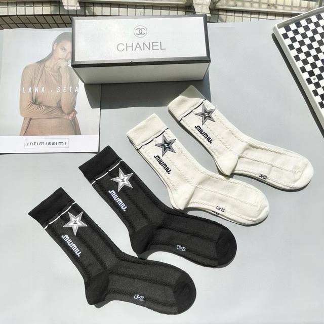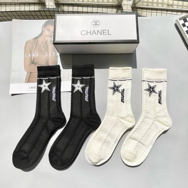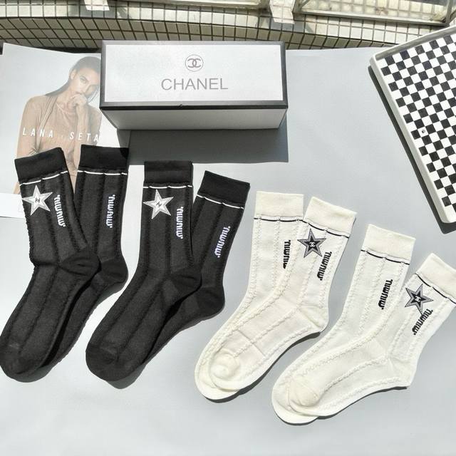 A box of four pairs of Chanel's popular mid-calf socks, high-quality replica, complete with packaging! Absolutely stunning! A must-have for fashionistas, these are high-end, boutique-quality socks. They create a super sophisticated and stylish look! Highly recommended! A must-have fashion item!! (