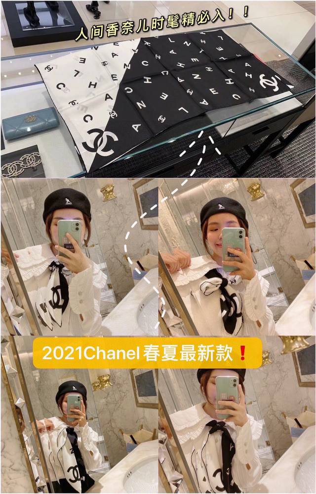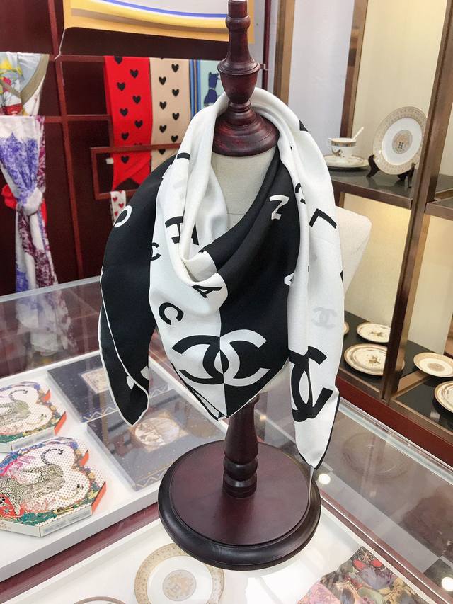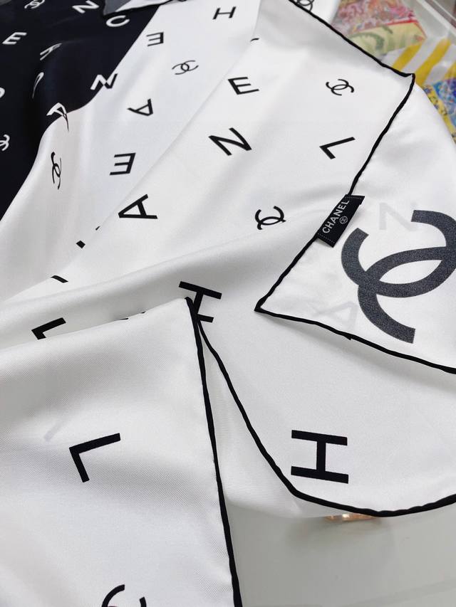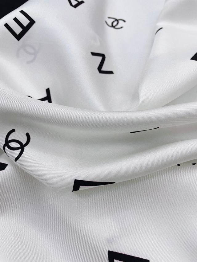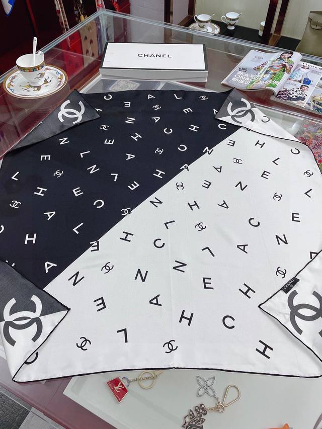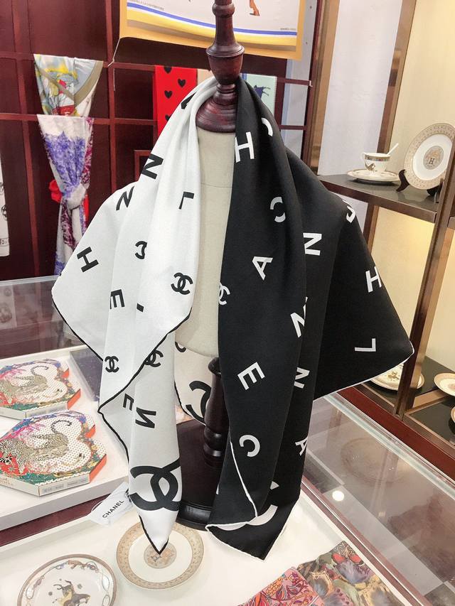 A must-have for every Chanel girl! I highly recommend this piece at a mom's price. It's a very elegant and fashionable piece from Chanel! It's super beautiful! The quality is unbeatable! The silk is very thick yet very, very, very soft and smooth! The touch is truly amazing. The classic black and white letter design, integrated into everyday items, can be paired with a very youthful style. It's enough to make any ordinary outfit stunning, and it's a timeless classic. A must-have for sisters who know how to match things together! The soft feel, glossy finish, and hemming are all very well done. The custom-grade fabric makes the scarf easier to style, and the simple combination gives it a very comfortable and tasteful brand-name feel. I highly recommend this piece at a mom's price! Size: 90*90cm top-grade twill silk square scarf!