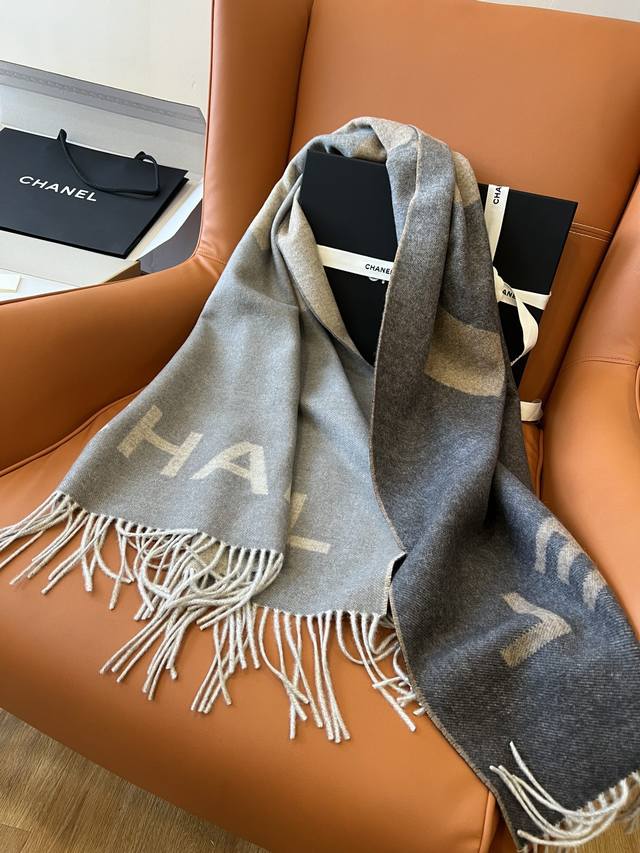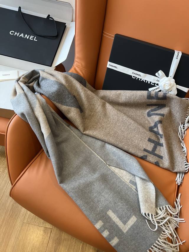 Can be used as a scarf or a shawl. The double-sided jacquard with different colors and patterns on both sides is really thoughtful. The oversized brand logo and double C color matching embellish the entire scarf. The high-end fabric is superb. 100% fine Alpine cashmere, the finest cashmere tips are used as raw materials, with a soft and delicate feel. Don't miss it if you are looking for high-end products in the counter. It is a fine product that can be passed down from generation to generation. Size: 70X180cm, without fringe