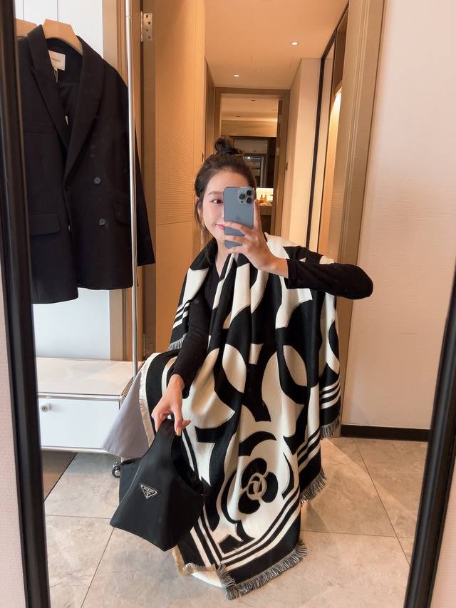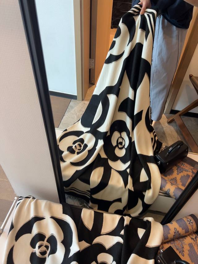 A top student with elegant temperament, this elegant and high-end Chanel new elegant camellia is sophisticated and classy! I really like it and it's very easy to wear. Just pair it with any white or black top you like. The overall silk texture shines with a touch of elegance under the light and shadow! This one is highly used, so just pair it with whatever you want after receiving it. I guarantee you'll be surprised! 140x140cm top-grade cashmere square scarf in two colors