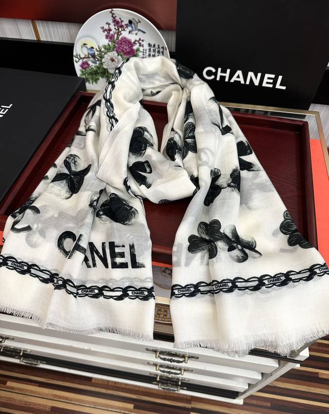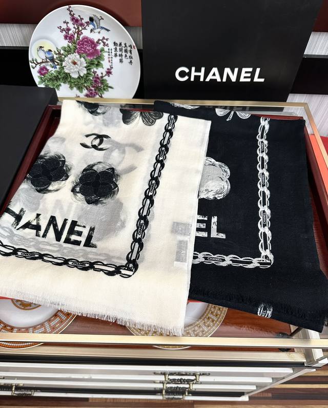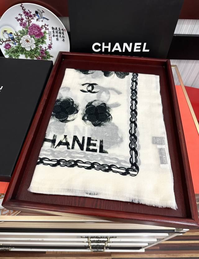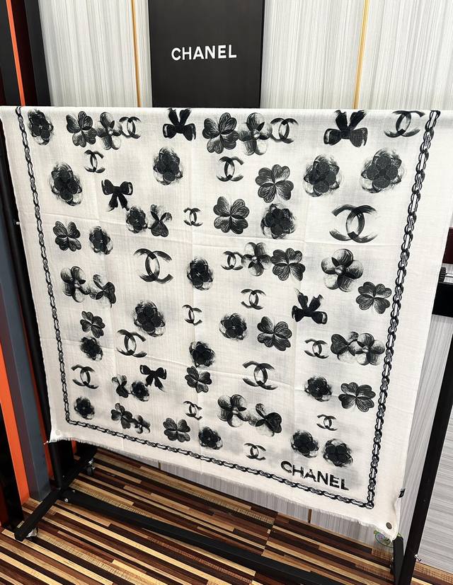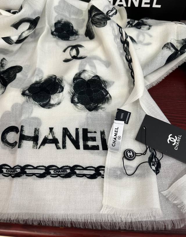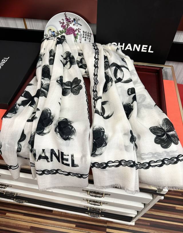 Chanel 2025 Classic Camellia Elegance Coco Style~ The new Chanel fabrics are incredibly luxurious, truly super soft, silky smooth, and very resilient, not easily snagged! This year's new collection~ I'm truly captivated by the design. A Chanel scarf is the perfect accessory for you [lips]. The effect is simply elegant and sophisticated, very dynamic, with elegant layers and texture. A must-have for Chanel fans! The effect is undeniably beautiful, and it complements clothing, shoes, and bags perfectly [beer]. The actual product is even more beautiful. Classic black and white. Size: 100X200, Material: Cashmere, 2 colors DDD