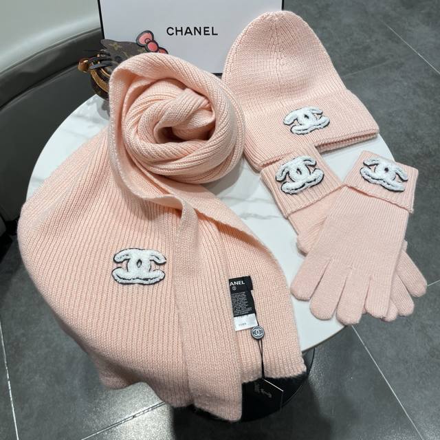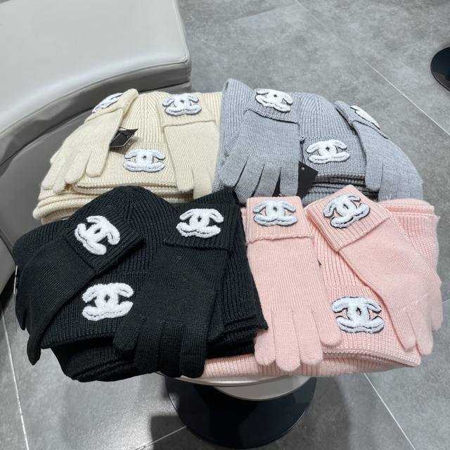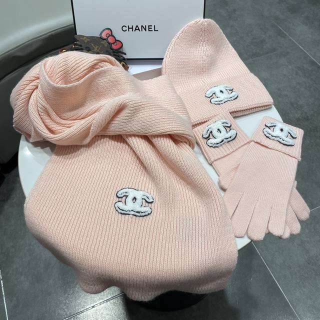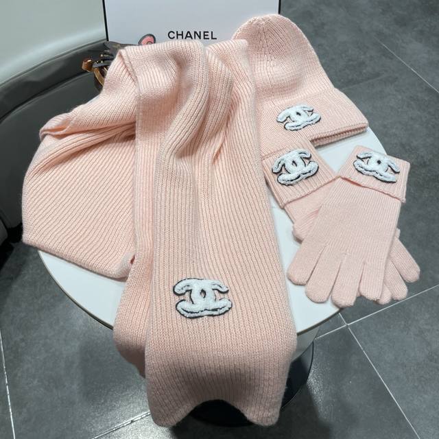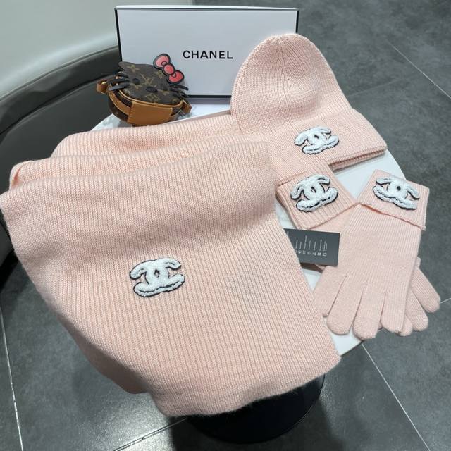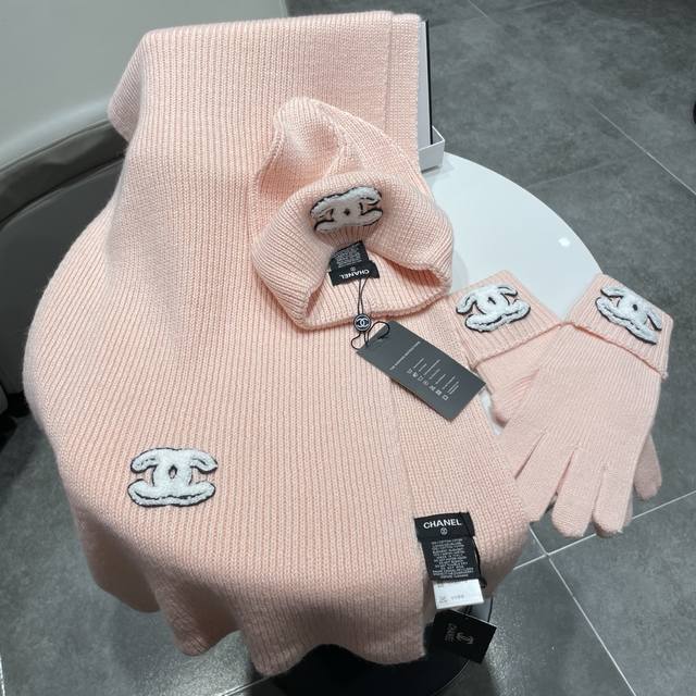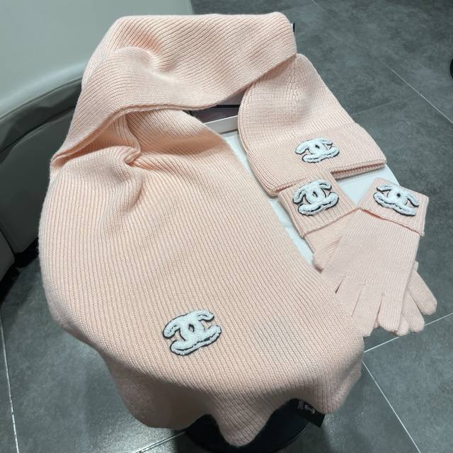 Immerse yourself in a pure white snowfield, interpreting winter elegance with a Chanel sheep three-piece set. A solid-color chunky knit scarf, gloves, and hat, wrapped in delicate cashmere to protect against the biting cold, offer light and warm comfort. The classic chunky knit texture is subtly accented with the black and white double-C logo, outlining a snow-capped mountain posture that embodies both freedom and composure.