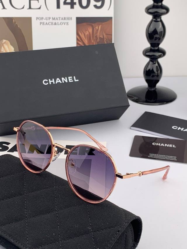 Chanel 2025 Spring New Sunglasses - Popular among online influencers for their chic and sweet style. Even better on the face. Excellent metallic finish. Model: Ch3532