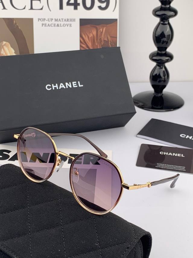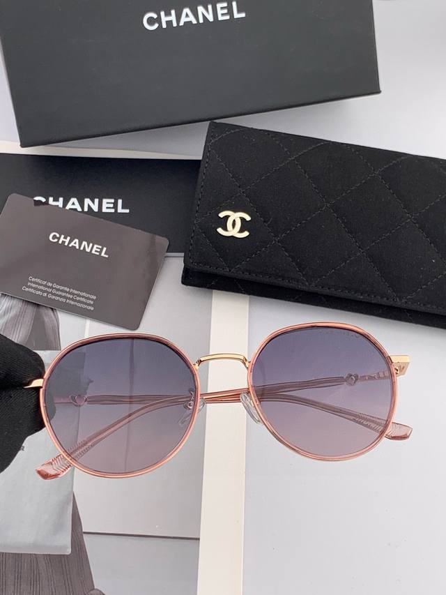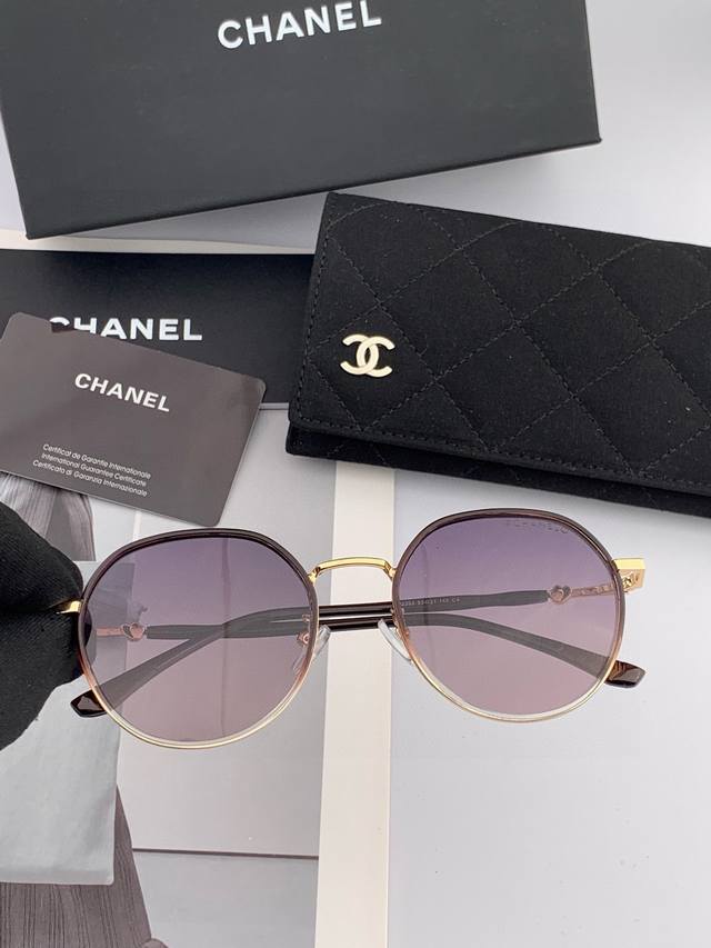 Chanel 2025 Spring New Sunglasses - Popular among online influencers for their chic and sweet style. Even better on the face. Excellent metallic finish. Model: Ch3532