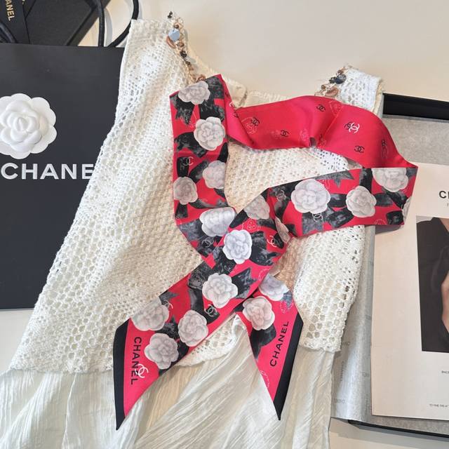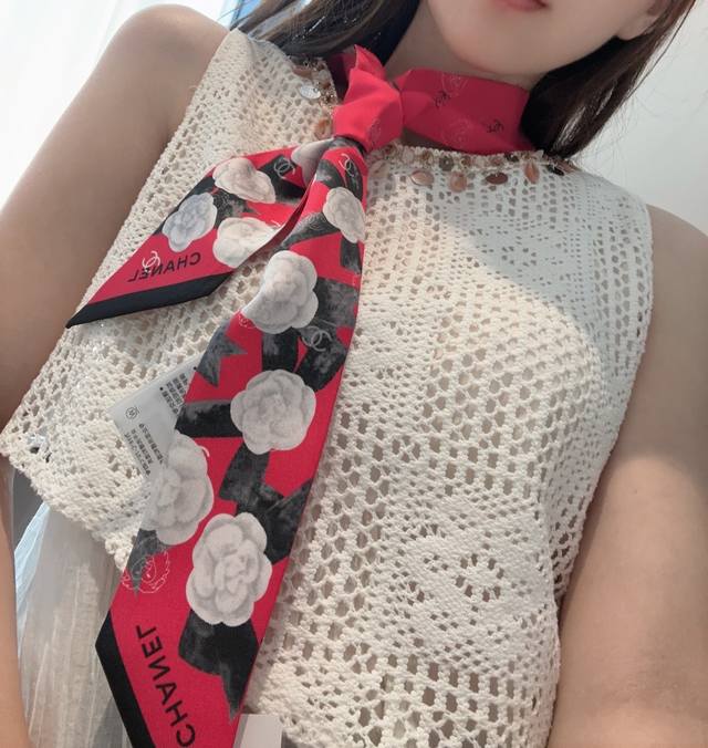 A flexible accessory that can be worn or tied, a finishing touch on a bag handle, a romantic accent in the hair, or a gentle touch on a suit collar.