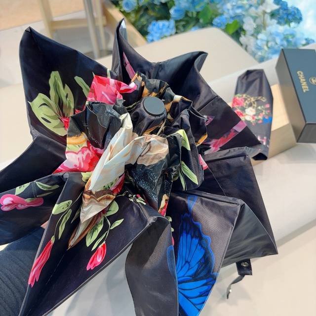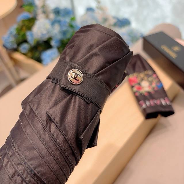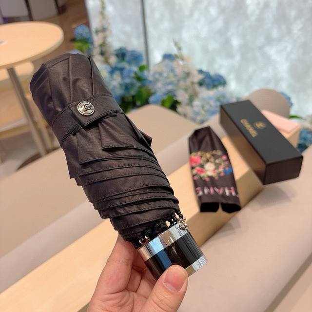 Chanel 50% off manual folding umbrella made of Taiwan imported UV anti-ultraviolet umbrella cloth original OEM quality 2 colors