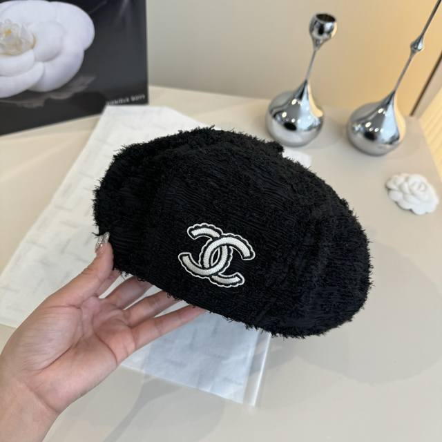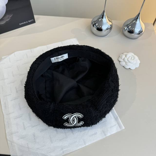 Chanel wool beret, small Chanel style chain beret, head circumference 57Cm