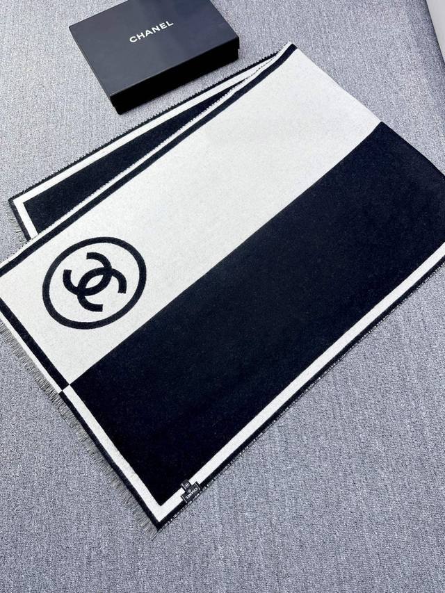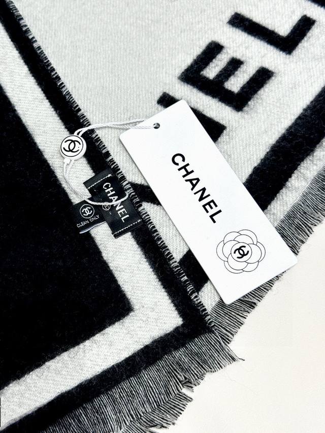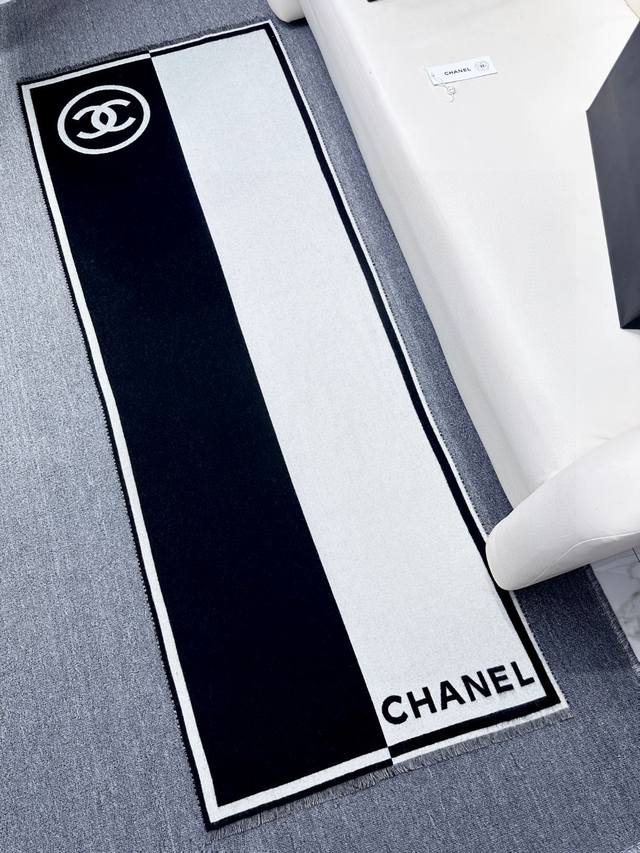 Chanel black and white symmetrical double-sided large shawl. Super classic black and white color matching. Simple and durable style. 98% cashmere 2% wool. Soft and warm to the touch. Wrapping it up in the winter makes you feel safe. Large size 195*65cm. Can be used as a scarf or shawl or as a portable blanket.