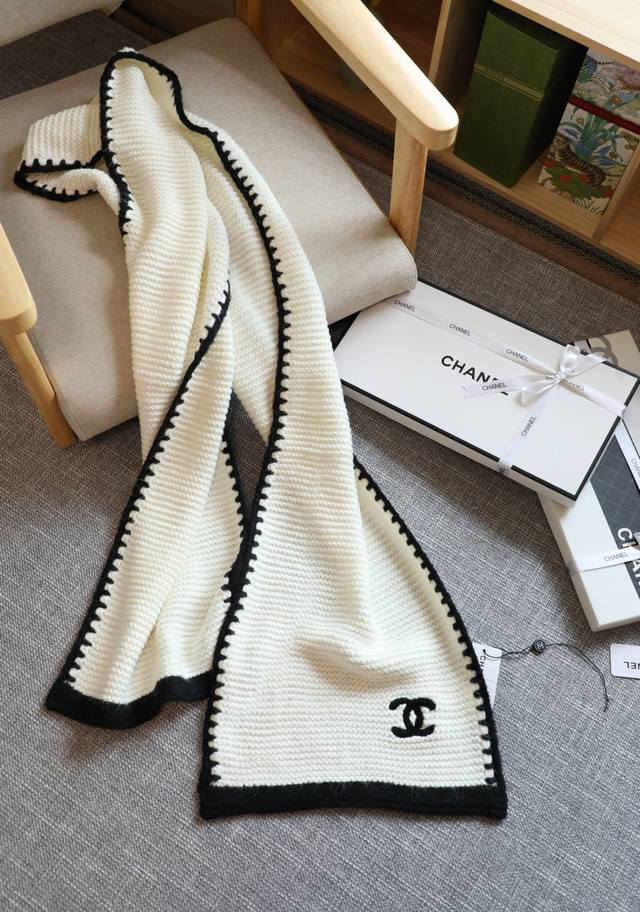 Chanel boutique new style lace-trimmed knitted long scarf, absolutely gorgeous! [crying emoji] A top-quality boutique item, imported pure cashmere, fashionable trimmed knitted scarf/shawl, extremely beautiful and flattering. It's versatile and looks great on. See for yourself if you like it! Scarf size: 33 x 170 cm, 100% selected pure cashmere, a perfect gift!