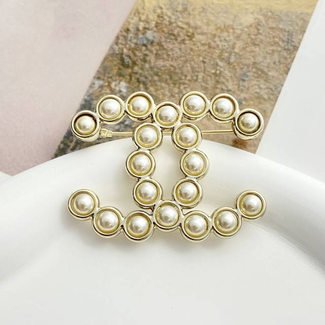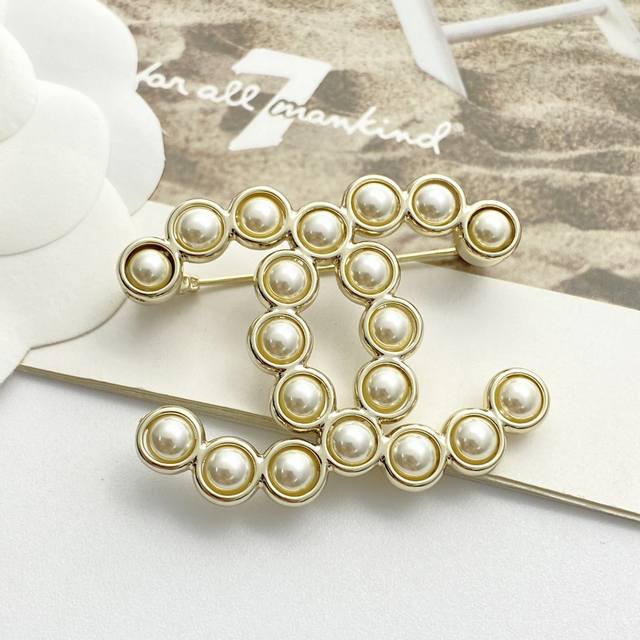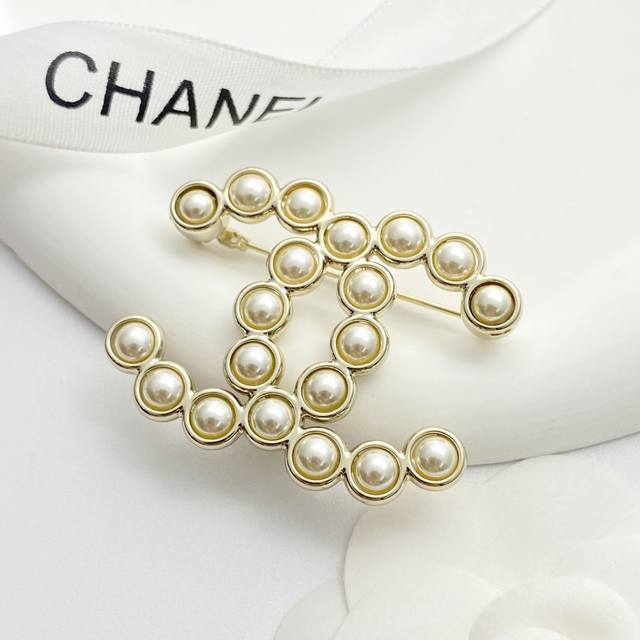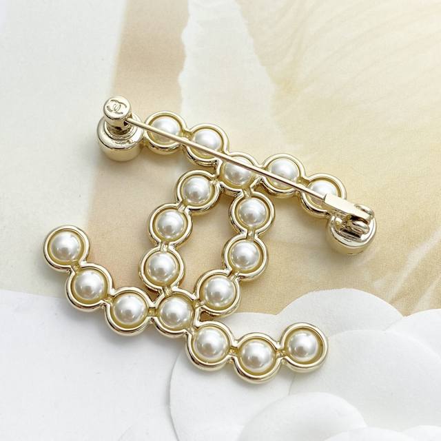 Chanel brooches are hot sellers! Chan 24 Pearl Double C Brooch. This classic double C design is so classy! It also features a unique beading design! Each bead can rotate! The unique shape is incredibly stylish. Simple yet eye-catching, with exquisite craftsmanship.
